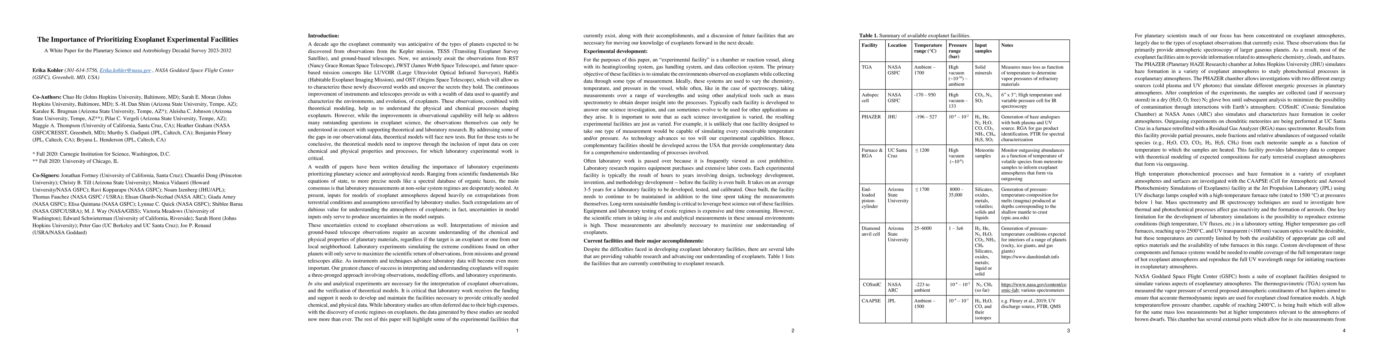 Continuous improvements of observations and modeling efforts have led to tremendous strides in exoplanetary science. However, as instruments and techniques advance laboratory data becomes more important to interpret exoplanet observations and verify theoretical modeling. Though experimental studies are often deferred due to their high costs and long timelines, it is imperative that laboratory investigations are prioritized to ensure steady advances in the field of exoplanetary science. This White Paper discusses the importance of prioritizing exoplanetary laboratory efforts, and discusses several experimental facilities currently performing exoplanetary research.
