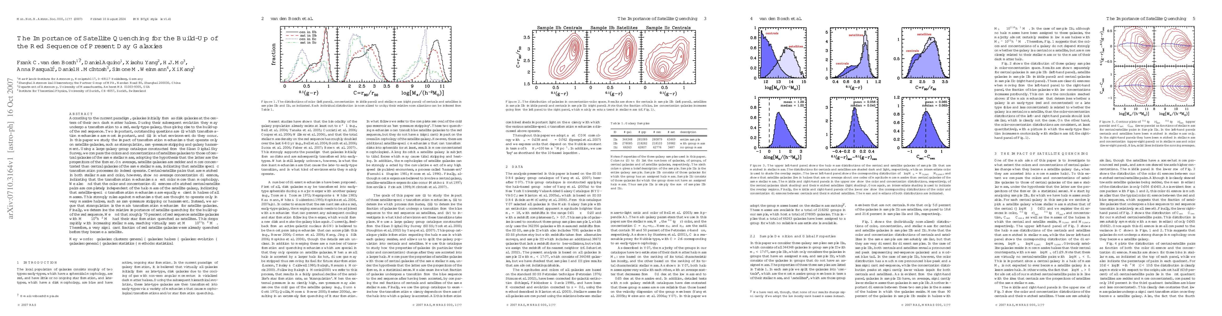 In the current paradigm, red sequence galaxies are believed to have formed as blue disk galaxies that subsequently had their star formation quenched. Since red-sequence galaxies typically have an early-type morphology, the transition from the blue to the red sequence also involves a morphological transformation. In this paper we study the impact of transformation mechanisms that operate only on satellite galaxies, such as strangulation, ram-pressure stripping and galaxy harassment. Using a large galaxy group catalogue constructed from the SDSS, we compare the colors and concentrations of satellites galaxies to those of central galaxies of the same stellar mass, adopting the hypothesis that the latter are the progenitors of the former. On average, satellites are redder and more concentrated than central galaxies of the same stellar mass. Central-satellite pairs that are matched in both stellar mass and color, however, show no average concentration difference, indicating that the transformation mechanisms affect color more than morphology. The color and concentration differences of matched central-satellite pairs are completely independent of the halo mass of the satellite galaxy, indicating that satellite-specific transformation mechanisms are equally efficient in haloes of all masses. This strongly favors strangulation as the main quenching mechanism for satellite galaxies. Finally, we determine the relative importance of satellite quenching for the build-up of the red sequence. We find that roughly 70 percent of red sequence satellite galaxies with a stellar mass of 10^9 Msun had their star formation quenched as satellites. This drops rapidly to zero with increasing stellar mass, indicating that a significant fraction of red satellites were already quenched before they became a satellite.