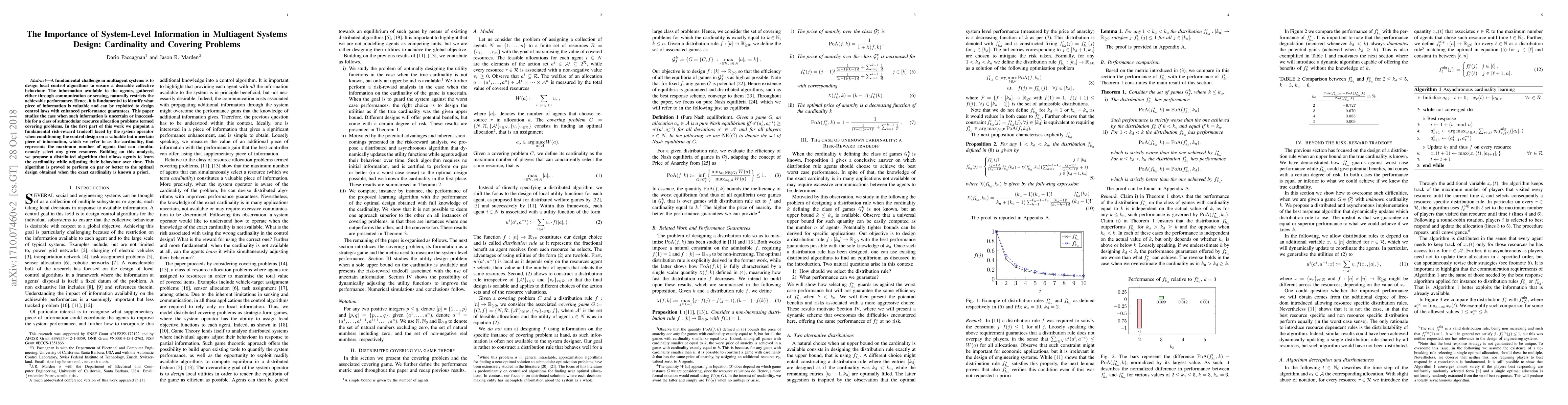 A fundamental challenge in multiagent systems is to design local control algorithms to ensure a desirable collective behaviour. The information available to the agents, gathered either through communication or sensing, naturally restricts the achievable performance. Hence, it is fundamental to identify what piece of information is valuable and can be exploited to design control laws with enhanced performance guarantees. This paper studies the case when such information is uncertain or inaccessible for a class of submodular resource allocation problems termed covering problems. In the first part of this work we pinpoint a fundamental risk-reward tradeoff faced by the system operator when conditioning the control design on a valuable but uncertain piece of information, which we refer to as the cardinality, that represents the maximum number of agents that can simultaneously select any given resource. Building on this analysis, we propose a distributed algorithm that allows agents to learn the cardinality while adjusting their behaviour over time. This algorithm is proved to perform on par or better to the optimal design obtained when the exact cardinality is known a priori.