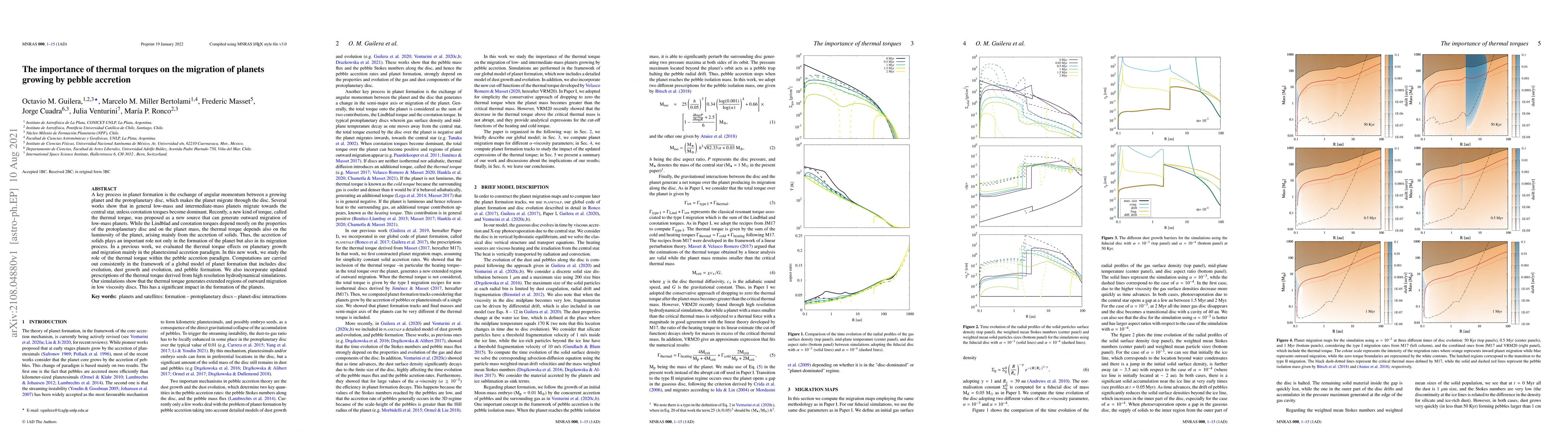 This paper explores the role of thermal torques in the migration of planets forming through pebble accretion, showing that these torques can lead to extended regions of outward migration in low viscosity discs, significantly influencing planet formation. Updated models incorporating high-resolution simulations reveal the thermal torque's dependency on both disc properties and the planet's luminosity from solid accretion.