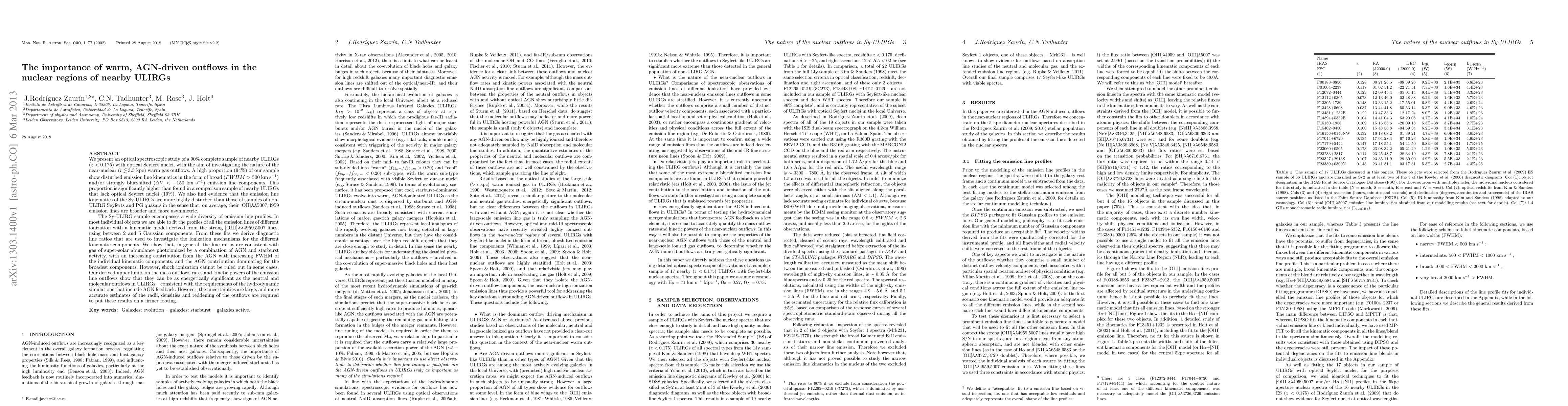 We present an optical spectroscopic study of a 90% complete sample of 17 nearby ULIRGs with optical Seyfert nuclei, with the aim of investigating the nature of the nuclear warm gas outflows. A high proportion (94%) of our sample show disturbed emission line kinematics in the form of broad (FWHM > 500 km s-1) and/or strongly blueshifted (\Delta V < -150 km s-1) emission line components. This proportion is significantly higher than found in a comparison sample of non-Sy ULIRGs (19%). We also find evidence that the [OII]5007,4959 emission lines in Sy-ULIRGs are broader and more asymmetric that in samples of non-ULIRG Seyferts. The Sy-ULIRG sample encompasses a wide diversity of emission line profiles. In most individual objects we are able to fit the profiles of all the emission lines with a kinematic model derived from the strong [OIII]4959,5007 lines, using between 2 and 5 Gaussian components. From these fits we derive diagnostic line ratios that are used to investigate the ionization mechanisms for the different kinematic components. We show that, in general, the line ratios are consistent with gas of super-solar abundance photoionized by a combination of AGN and starburst activity, with an increasing contribution from the AGN with increasing FWHM of the individual kinematic components, and the AGN contribution dominating for the broadest components. However, shock ionization cannot be ruled out in some cases. Our derived upper limits on the mass outflows rates and kinetic powers of the emission line outflows show that they can be as energetically significant as the neutral and molecular outflows in ULIRGs-consistent with the requirements of the hydrodynamic simulations that include AGN feedback. However, the uncertainties are large, and more accurate estimates of the radii, densities and reddening of the outflows are required to put these results on a firmer footing.