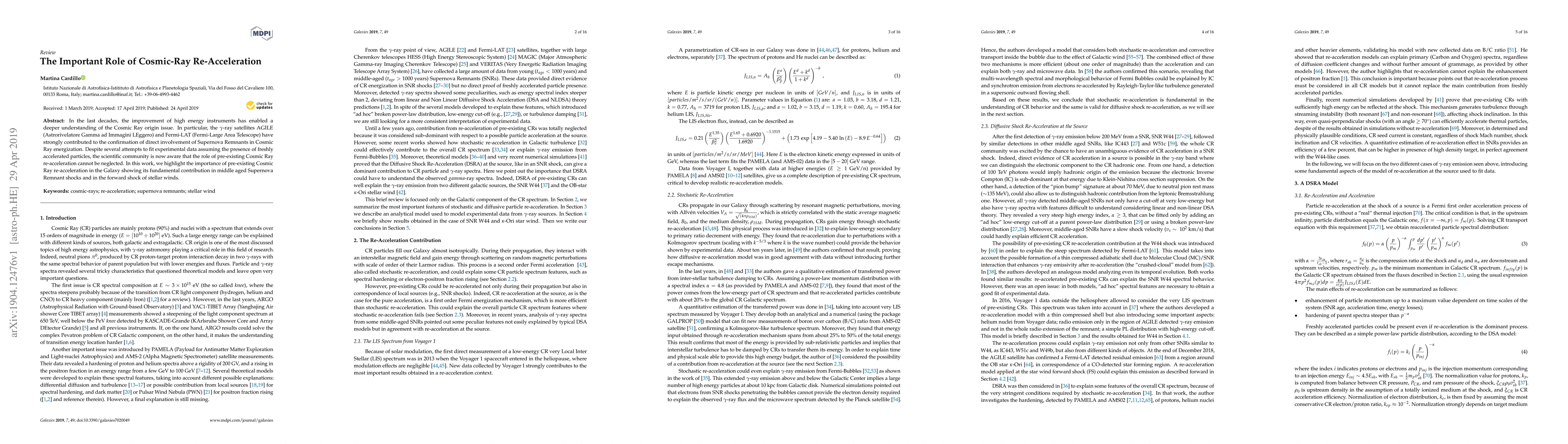 This paper emphasizes the significant role of pre-existing Cosmic Ray re-acceleration in the Galaxy, particularly in middle-aged Supernova Remnant shocks and the forward shock of stellar winds, as confirmed by gamma-ray satellites AGILE and Fermi-LAT. It underscores the necessity of considering re-acceleration in understanding Cosmic Ray energization.