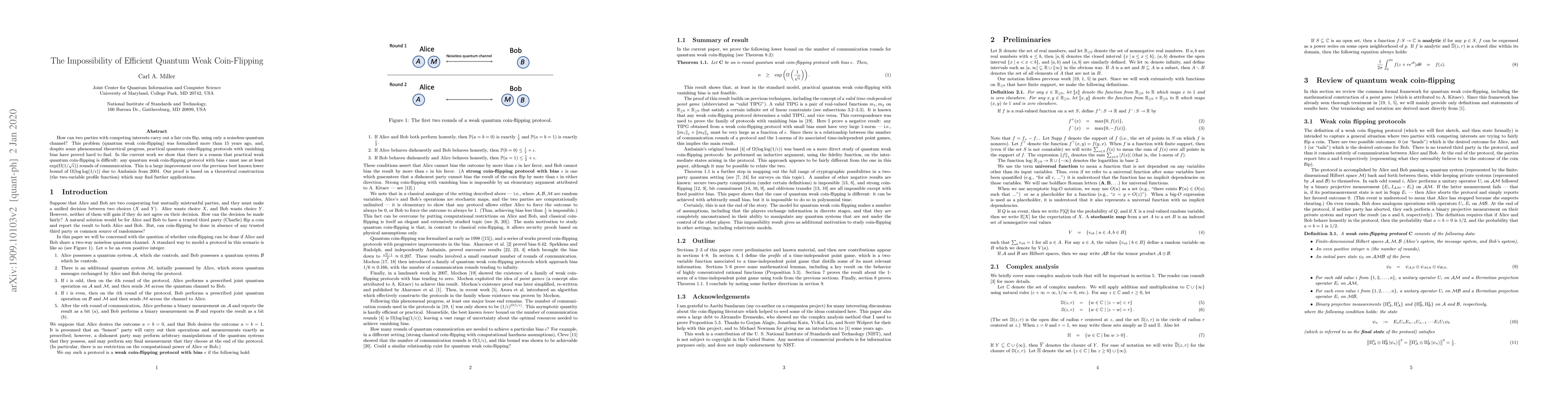 This paper demonstrates that achieving efficient quantum weak coin-flipping is fundamentally challenging, requiring at least $\exp (\Omega (1/\sqrt{\epsilon} ))$ communication rounds for bias $\epsilon$, significantly improving the previous lower bound. The authors' proof utilizes a new theoretical construct, the two-variable profile function, which may have broader applications.
