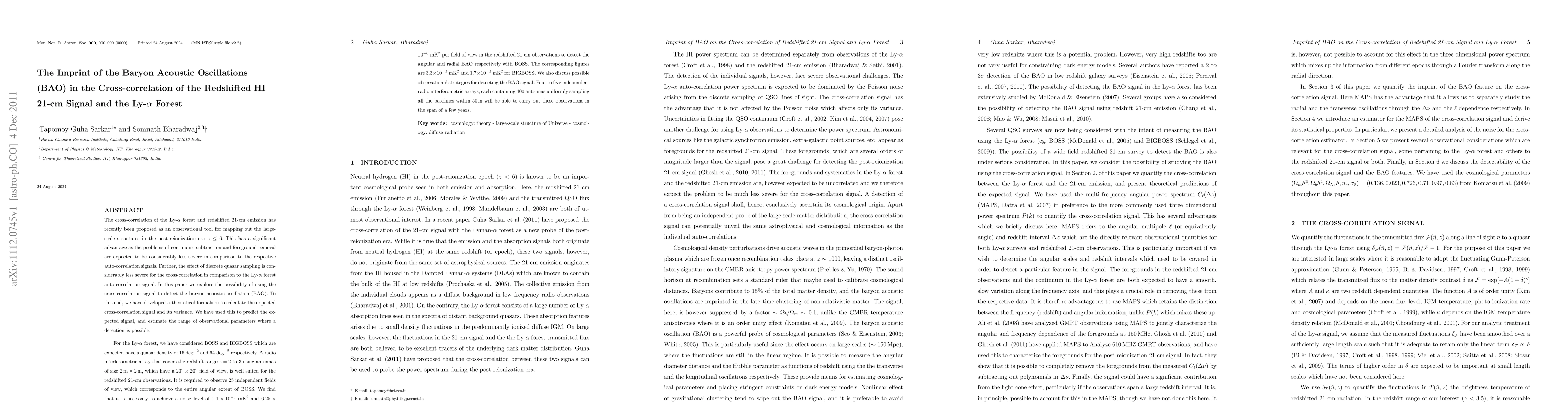 This work is novel as it proposes using the cross-correlation of the Ly-α forest and redshifted 21-cm signal to detect BAO, addressing the challenges of continuum subtraction, foreground removal, and discrete quasar sampling inherent in auto-correlation signals.
