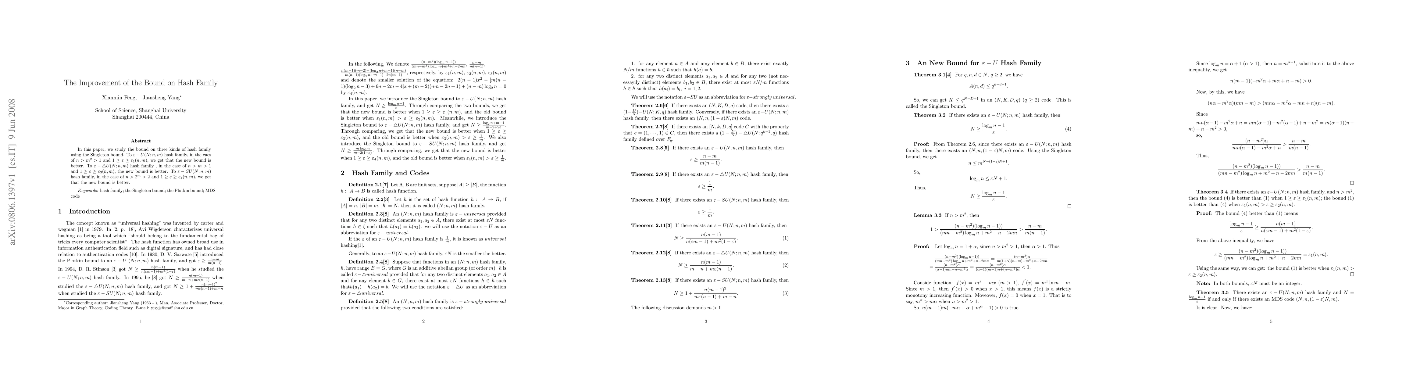 In this paper, we study the bound on three kinds of hash family using the Singleton bound. To $\epsilon-U(N; n, m)$ hash family, in the caes of $n>m^2>1$ and $1\geq\epsilon\geq \epsilon_1(n, m)$, we get that the new bound is better. To $\epsilon-\bigtriangleup U(N; n, m)$ hash family, in the case of $n>m>1$ and $1\geq\epsilon\geq\epsilon_3(n,m)$, the new bound is better. To $\epsilon-SU(N; n, m)$ hash family, in the case of $n>2^m>2$ and $1\geq\epsilon\geq \epsilon_4(n, m)$, we get that the new bound is better.