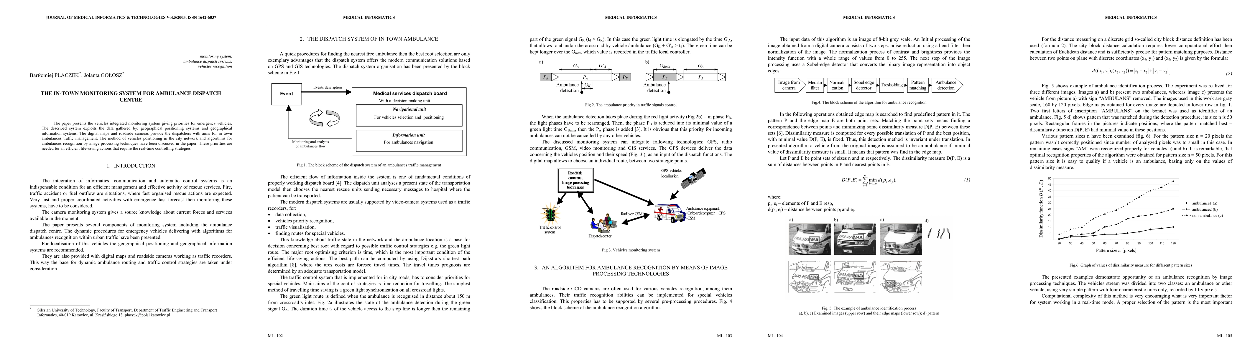 The paper presents the vehicles integrated monitoring system giving priorities for emergency vehicles. The described system exploits the data gathered by: geographical positioning systems and geographical information systems. The digital maps and roadside cameras provide the dispatchers with aims for in town ambulances traffic management. The method of vehicles positioning in the city network and algorithms for ambulances recognition by image processing techniques have been discussed in the paper. These priorities are needed for an efficient life-saving actions that require the real-time controlling strategies.