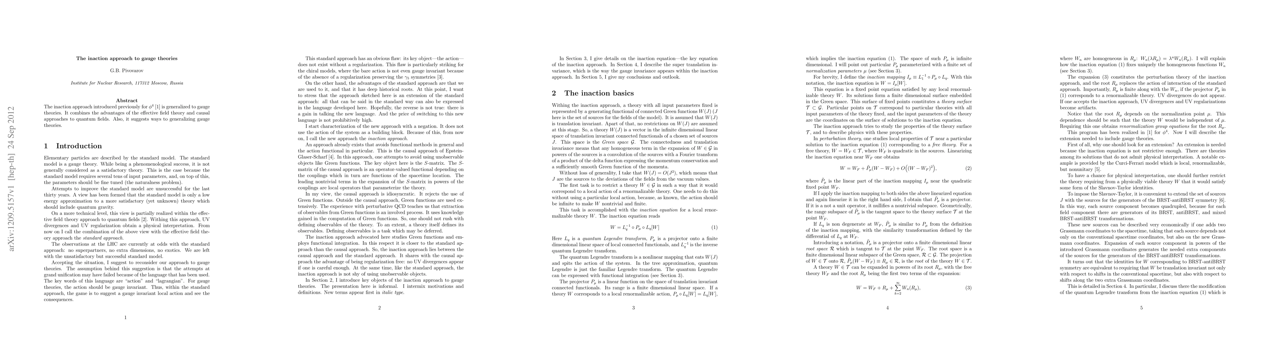 The inaction approach introduced previously for phi^4 is generalized to gauge theories. It combines the advantages of the effective field theory and causal approaches to quantum fields. Also, it suggests ways to generalizing gauge theories.