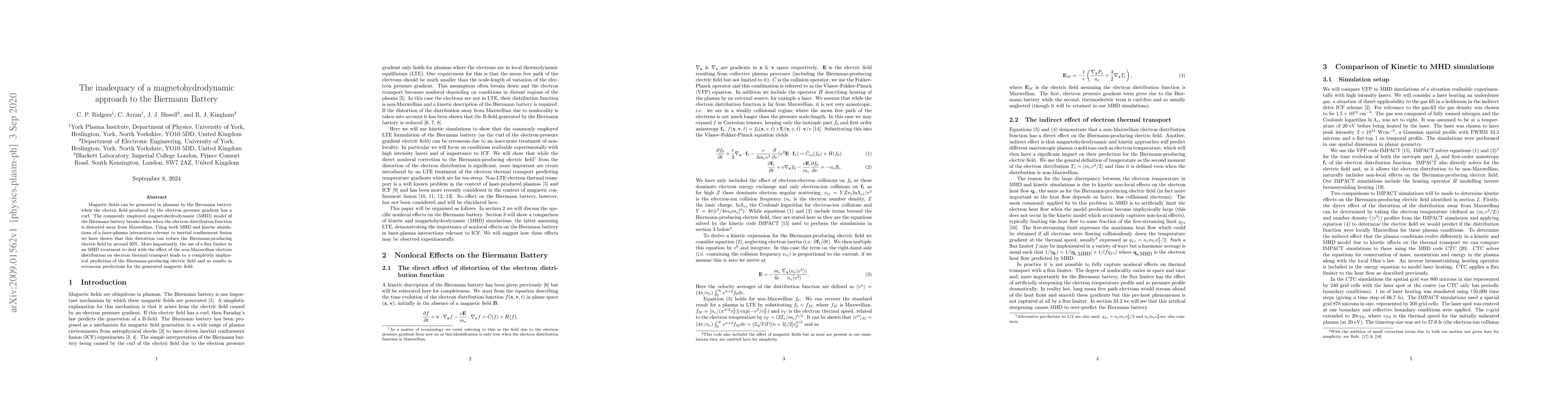 Magnetic fields can be generated in plasmas by the Biermann battery when the electric field produced by the electron pressure gradient has a curl. The commonly employed magnetohydrodynamic (MHD) model of the Biermann battery breaks down when the electron distribution function is distorted away from Maxwellian. Using both MHD and kinetic simulations of a laser-plasma interaction relevant to inertial confinement fusion we have shown that this distortion can reduce the Biermann-producing electric field by around 50\%. More importantly, the use of a flux limiter in an MHD treatment to deal with the effect of the non-Maxwellian electron distribution on electron thermal transport leads to a completely unphysical prediction of the Biermann-producing electric field and so results in erroneous predictions for the generated magnetic field.