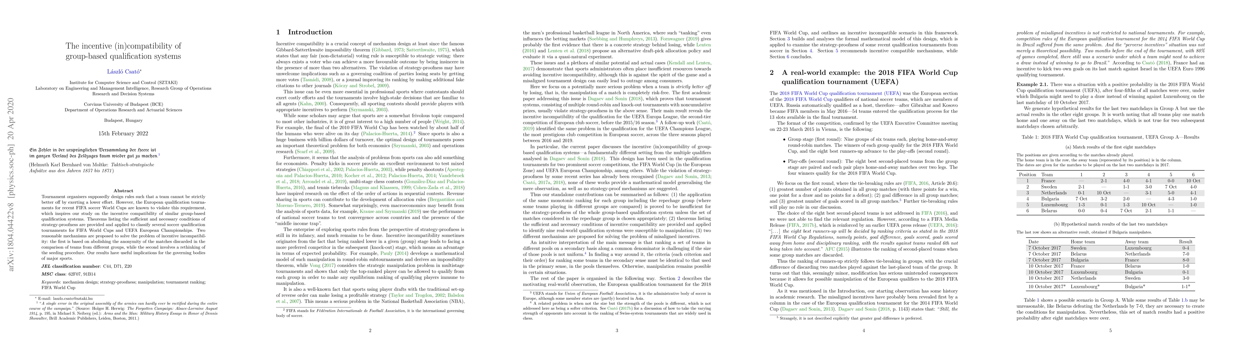 This paper examines the incentive incompatibility in group-based qualification tournaments, such as those for FIFA World Cups, and proposes theorems to classify their strategy-proofness. It suggests two mechanisms to address the issue, including abolishing anonymity of discarded matches and rethinking the seeding procedure.