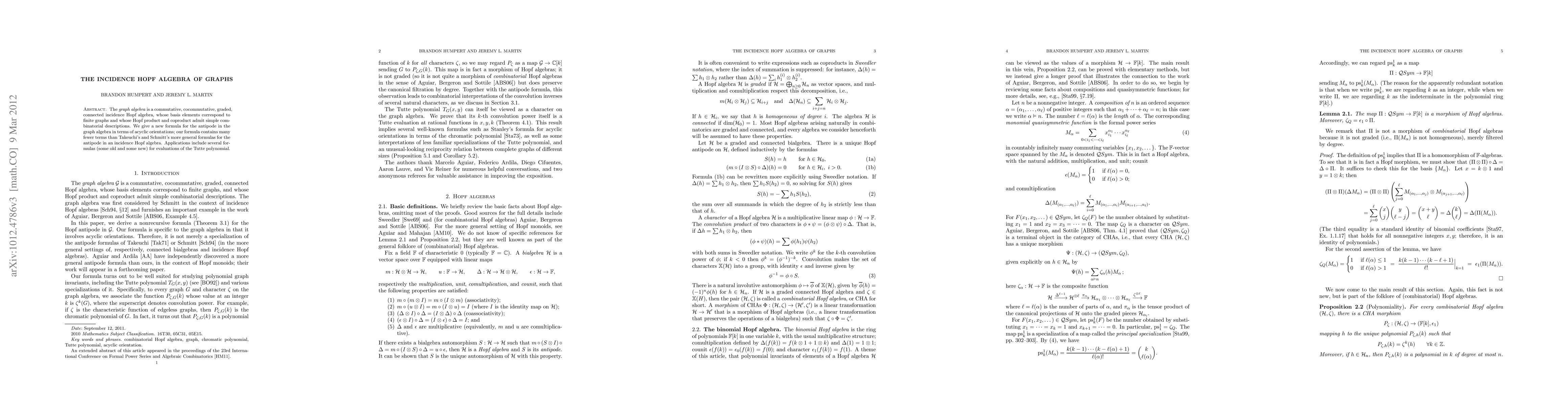 The paper introduces a new formula for the antipode in the graph algebra using acyclic orientations, which contains fewer terms than previous formulas by Takeuchi and Schmitt.