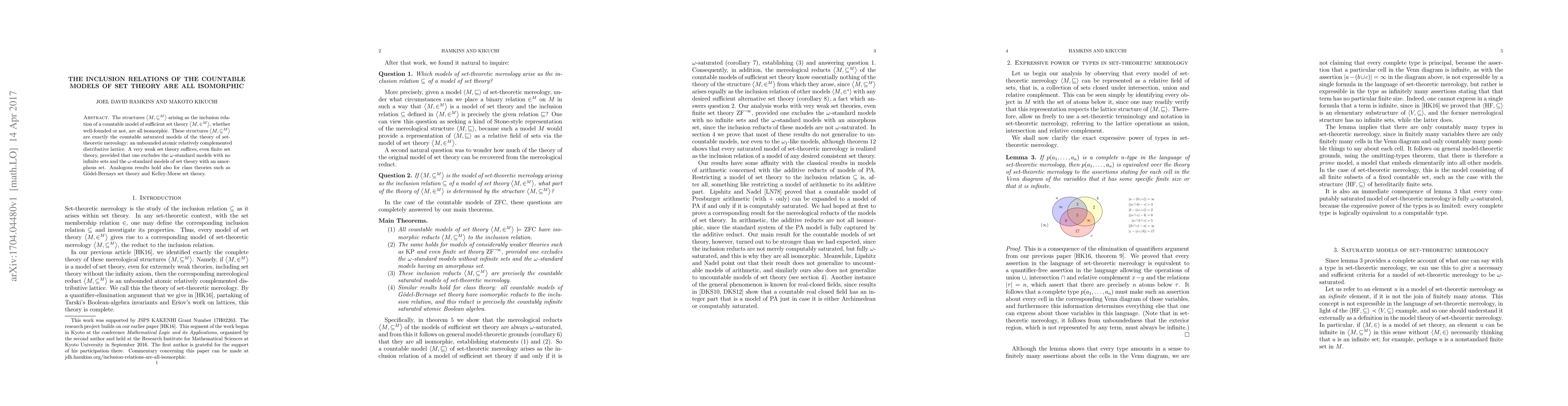 The paper demonstrates that all countable models of set theory, regardless of their well-foundedness, have isomorphic inclusion relations. These relations correspond to countable saturated models of set-theoretic mereology, specifically unbounded atomic relatively complemented distributive lattices.