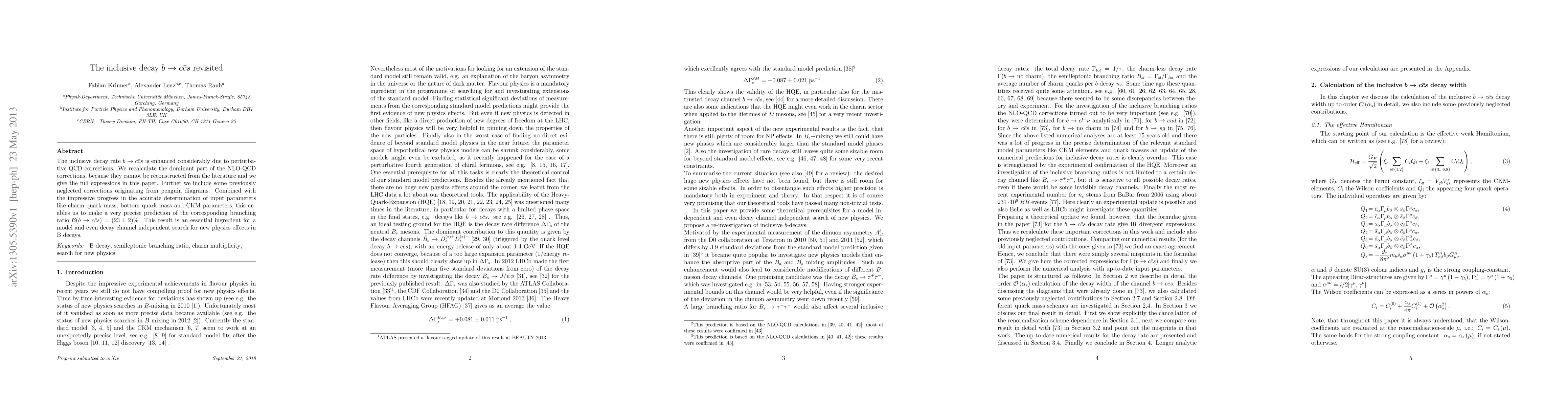 This paper recalculates the NLO-QCD corrections for the inclusive decay b to ccs, including previously neglected penguin diagram contributions, to provide a precise prediction of the branching ratio at 23 ± 2%. This refined prediction is crucial for detecting new physics in B decays.