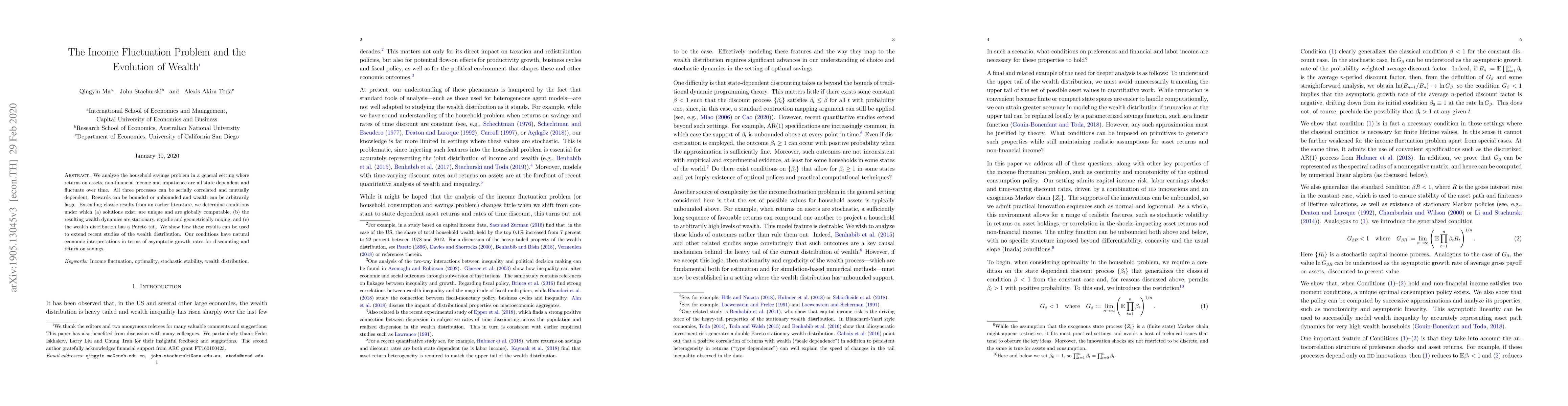 We analyze the household savings problem in a general setting where returns on assets, non-financial income and impatience are all state dependent and fluctuate over time. All three processes can be serially correlated and mutually dependent. Rewards can be bounded or unbounded and wealth can be arbitrarily large. Extending classic results from an earlier literature, we determine conditions under which (a) solutions exist, are unique and are globally computable, (b) the resulting wealth dynamics are stationary, ergodic and geometrically mixing, and (c) the wealth distribution has a Pareto tail. We show how these results can be used to extend recent studies of the wealth distribution. Our conditions have natural economic interpretations in terms of asymptotic growth rates for discounting and return on savings.