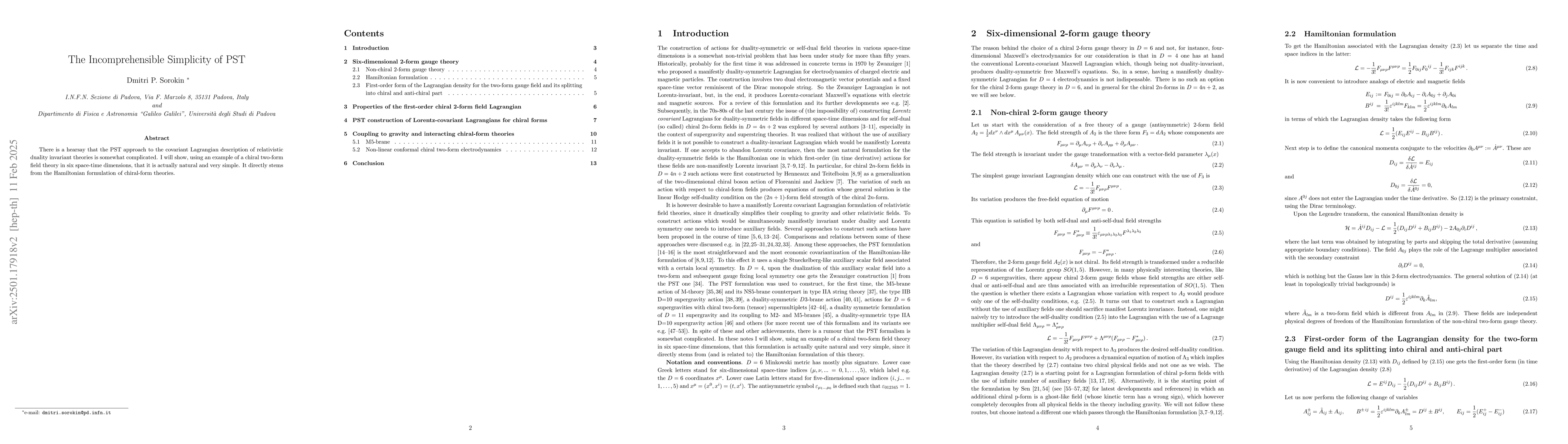 Title: The Incomprehensible Simplicity of PST Summary: This paper demonstrates that the PST approach to relativistic duality invariant theories, often perceived as complicated, is actually straightforward and natural, as shown through an example of a chiral two-form field theory in six dimensions, derived from the Hamiltonian formulation of chiral-form theories.