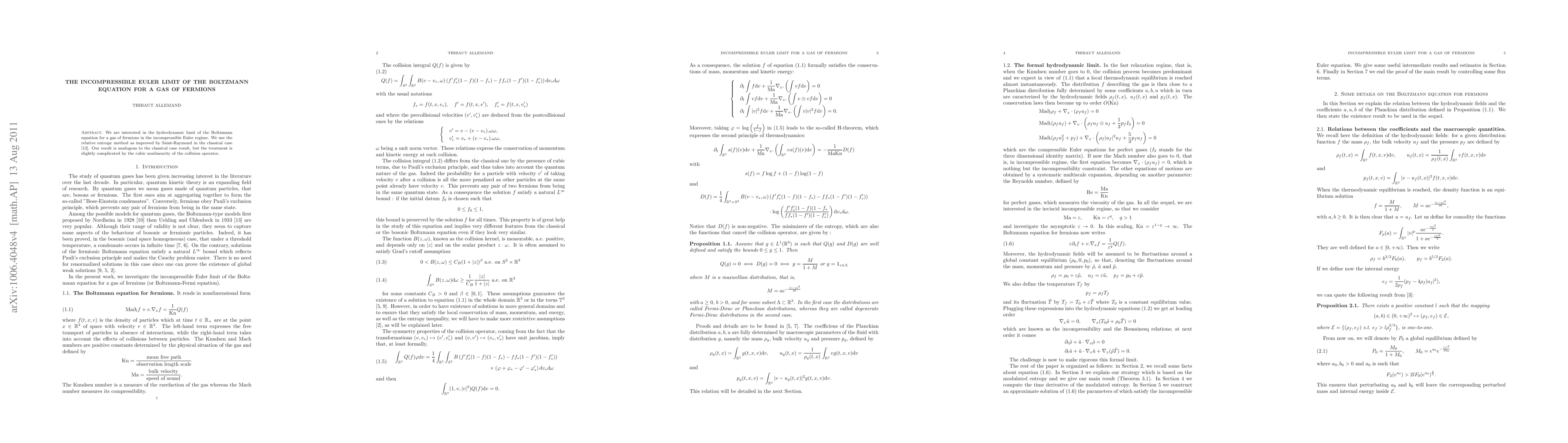 Summary: This paper explores the hydrodynamic limit of the Boltzmann equation for a gas of fermions, showing that it converges to the incompressible Euler regime, similar to the classical case, despite the added complexity from the cubic nonlinearity in the collision operator. The study employs the enhanced relative entropy method by Saint-Raymond.