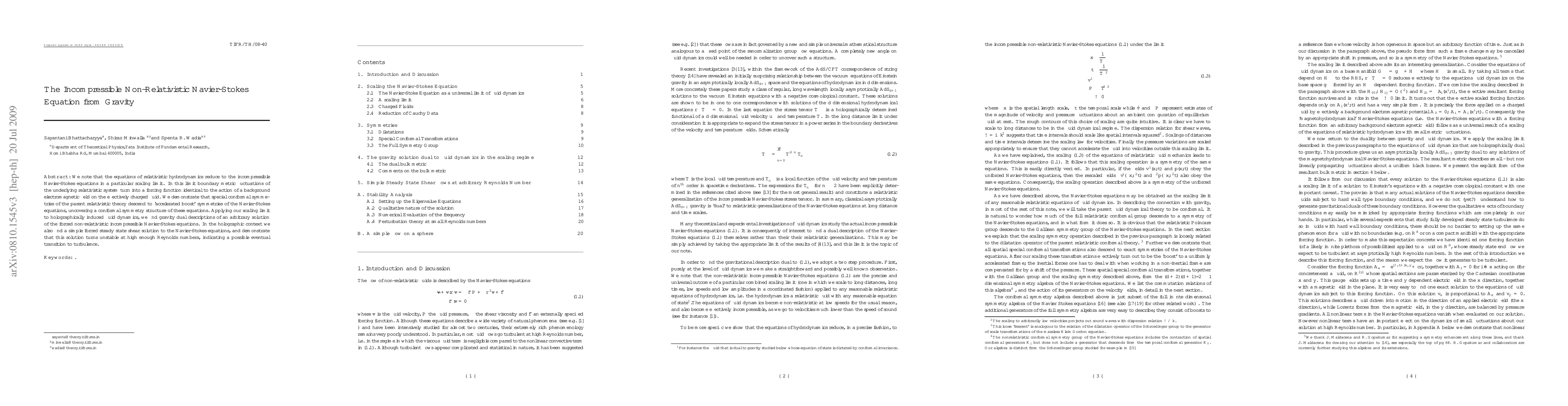 This paper demonstrates that the incompressible Navier-Stokes equations emerge from a scaling limit of relativistic hydrodynamics, revealing new conformal symmetries in the Navier-Stokes framework. It also finds gravitational duals for these equations and identifies a forced steady state shear solution that becomes unstable at high Reynolds numbers, suggesting a potential turbulence transition.