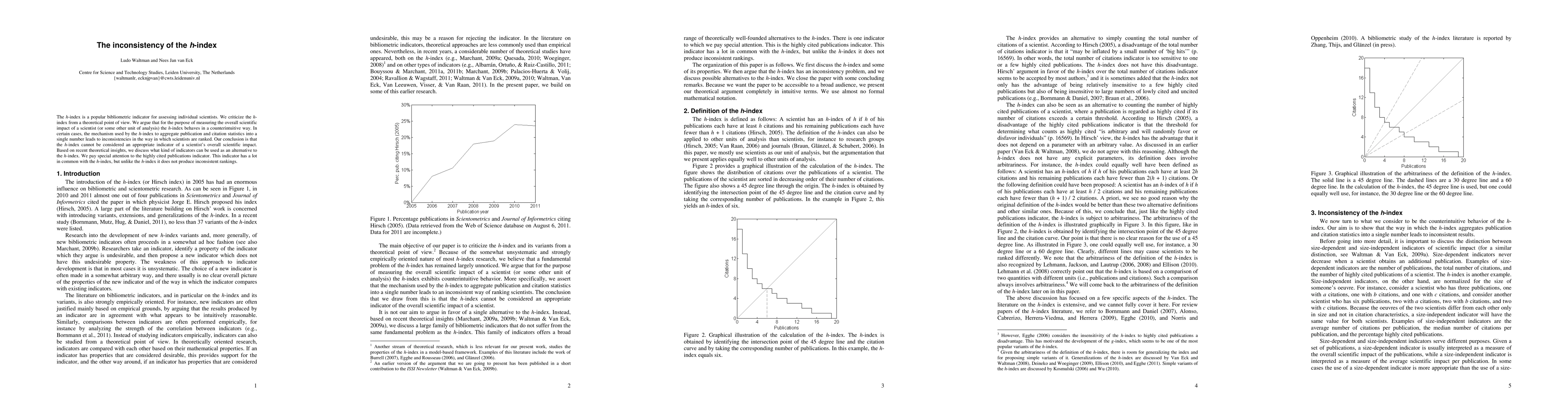 This paper critiques the h-index as a bibliometric measure for scientists, arguing it produces counterintuitive and inconsistent rankings due to its method of aggregating publication and citation data. The authors propose the highly cited publications indicator as a more reliable alternative.
