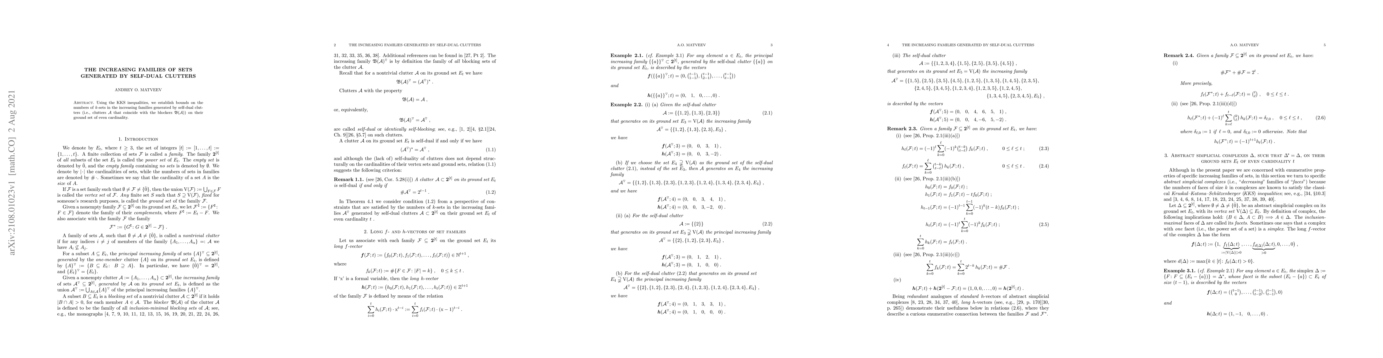 This paper uses KKS inequalities to determine upper and lower bounds on the number of $k$-sets in increasing families generated by self-dual clutters, which are clutters that are equal to their blockers on sets of even cardinality. The findings provide a deeper understanding of combinatorial structures in graph theory.