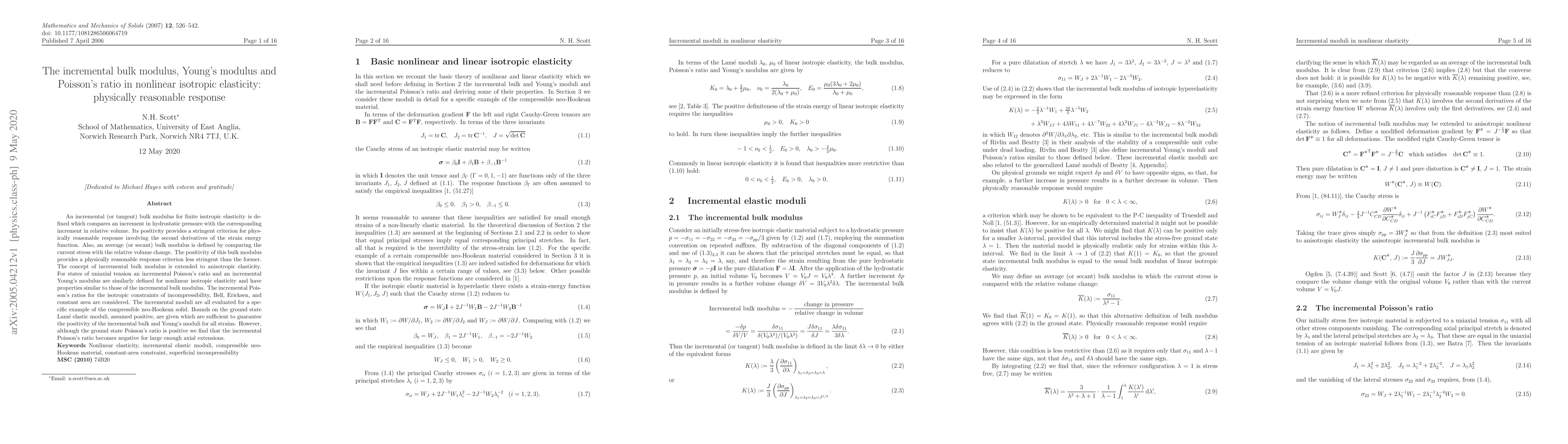 This paper defines incremental bulk modulus and related incremental moduli in nonlinear isotropic elasticity to ensure physically reasonable material responses. It finds that while the incremental bulk and Young's moduli remain positive under certain conditions, the incremental Poisson's ratio can become negative for sufficiently large strains.