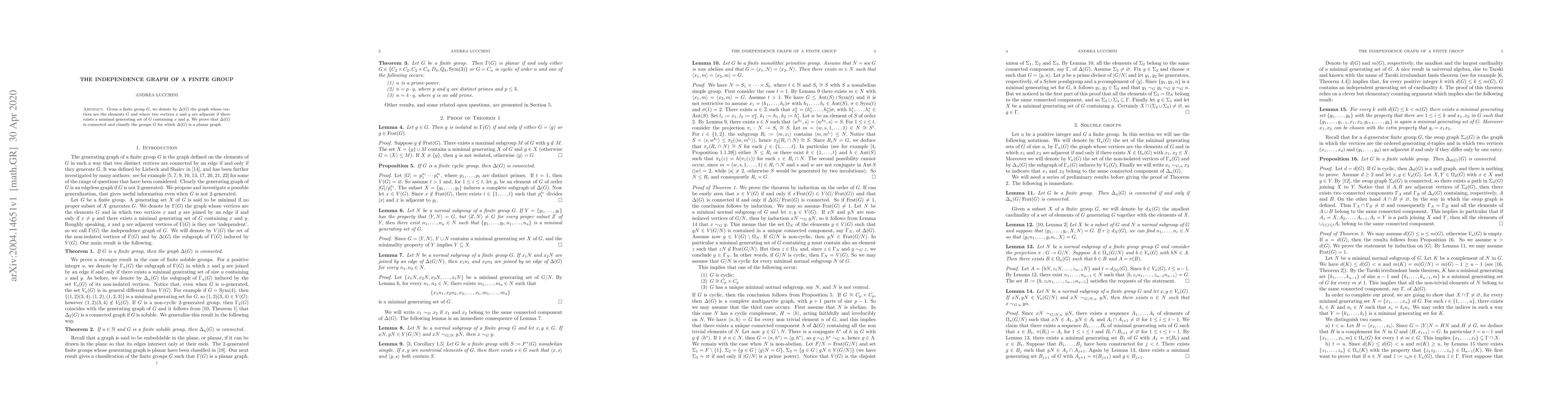 Given a finite group $G,$ we denote by $\Delta(G)$ the graph whose vertices are the elements $G$ and where two vertices $x$ and $y$ are adjacent if there exists a minimal generating set of $G$ containing $x$ and $y.$ We prove that $\Delta(G)$ is connected and classify the groups $G$ for which $\Delta(G)$ is a planar graph.