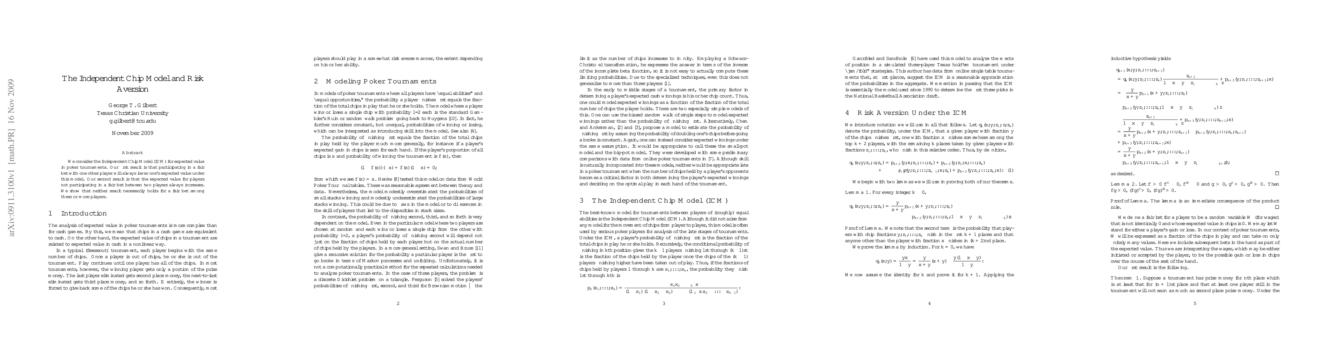 We consider the Independent Chip Model (ICM) for expected value in poker tournaments. Our first result is that participating in a fair bet with one other player will always lower one's expected value under this model. Our second result is that the expected value for players not participating in a fair bet between two players always increases. We show that neither result necessarily holds for a fair bet among three or more players.