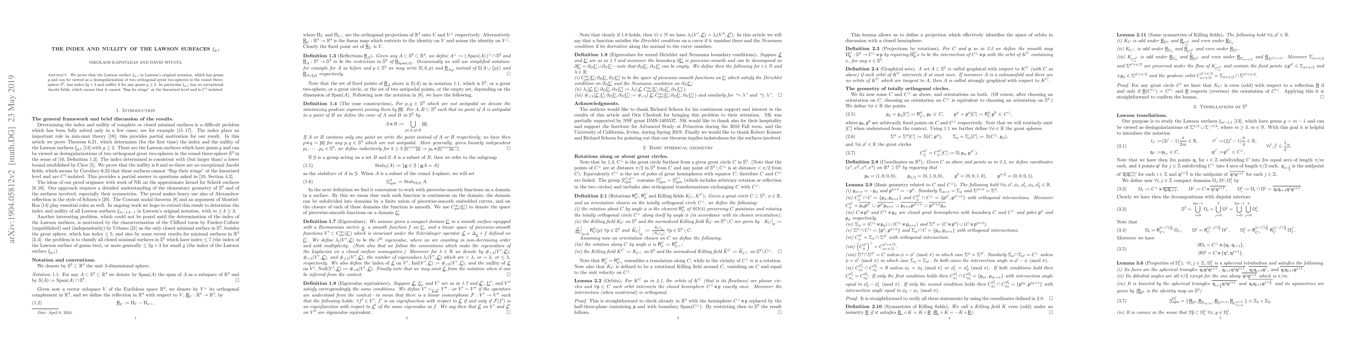 We prove that the Lawson surface $\xi_{g,1}$ in Lawson's original notation, which has genus $g$ and can be viewed as a desingularization of two orthogonal great two-spheres in the round three-sphere ${\mathbb{S}}^3$, has index $2g+3$ and nullity $6$ for any genus $g\ge2$. In particular $\xi_{g,1}$ has no exceptional Jacobi fields, which means that it cannot `flap its wings' at the linearized level and is $C^1$-isolated.