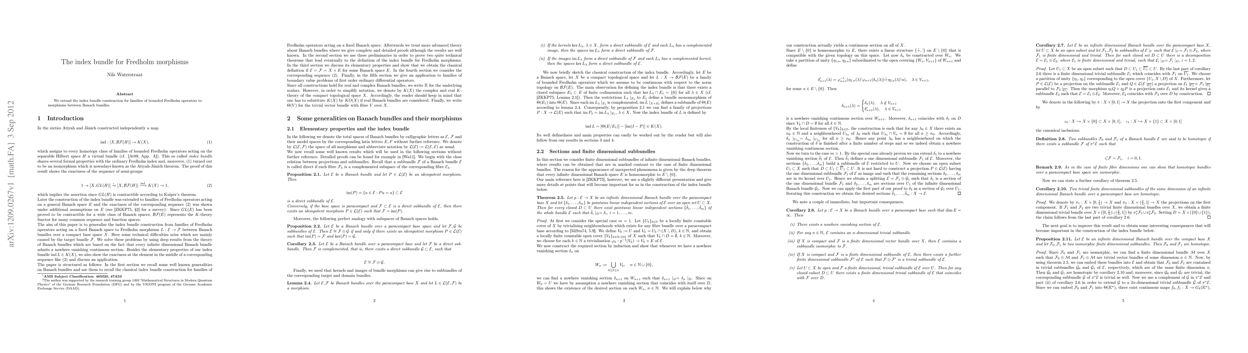Summary: This paper extends the index bundle construction for families of bounded Fredholm operators to encompass morphisms between Banach bundles, enhancing the understanding of Fredholm theory in a more generalized setting.