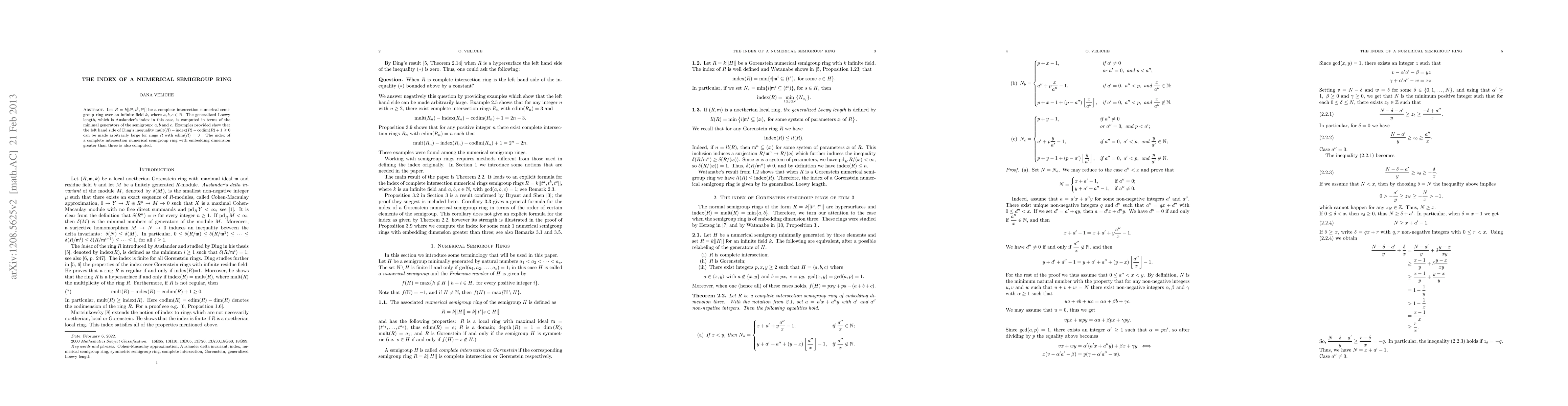 The paper computes the index of a complete intersection numerical semigroup ring in terms of its minimal generators, showing that the left side of Ding's inequality can be made arbitrarily large for rings with embedding dimension 3.
