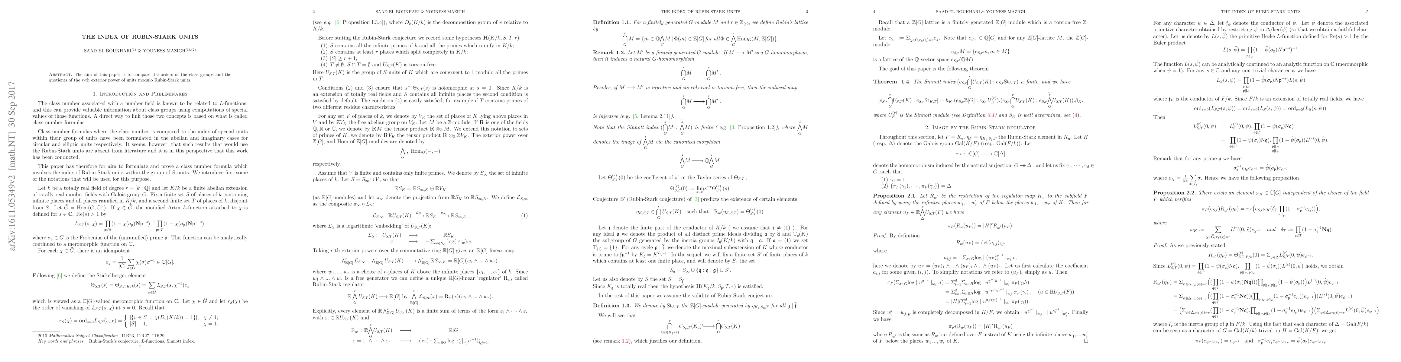 Summary: This paper investigates the relationship between the orders of class groups and the quotients derived from the $r$-th exterior power of units, focusing on their comparison through Rubin-Stark units. The study aims to provide insights into algebraic number theory.