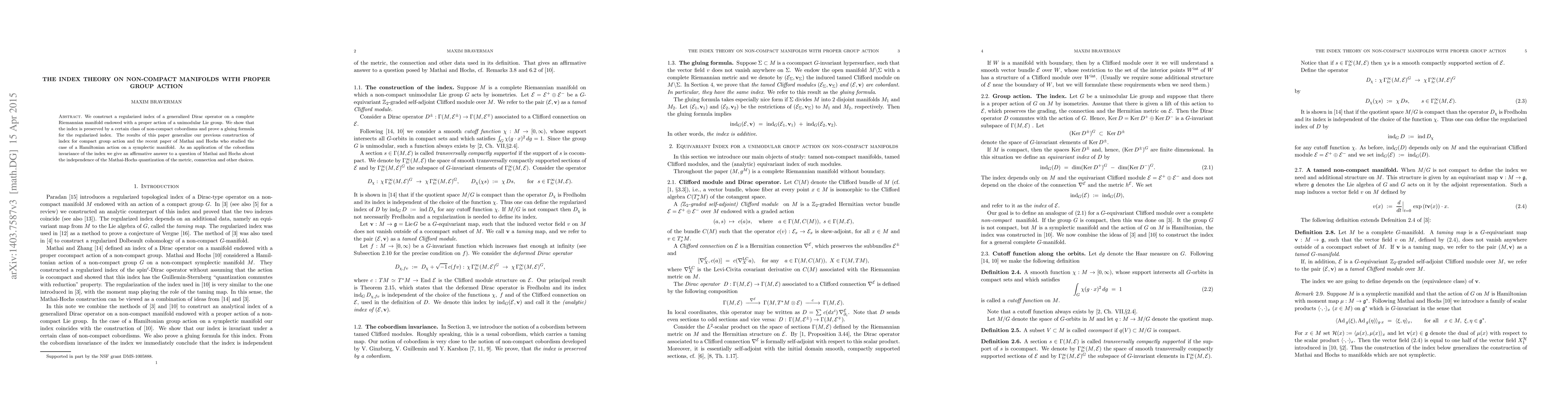 This paper constructs a regularized index for a generalized Dirac operator on non-compact manifolds with a proper group action, proving its invariance under certain cobordisms and providing a gluing formula. It extends previous index constructions for compact group actions and answers a question regarding the independence of quantization choices.