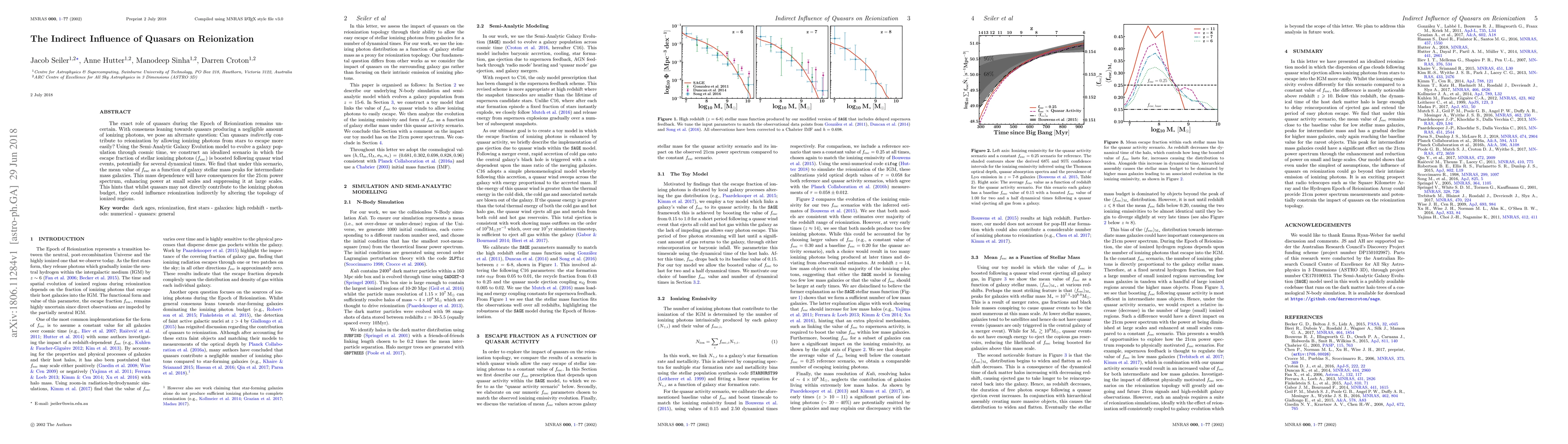The exact role of quasars during the Epoch of Reionization remains uncertain. With consensus leaning towards quasars producing a negligible amount of ionizing photons, we pose an alternate question: Can quasars indirectly contribute to reionization by allowing ionizing photons from stars to escape more easily? Using the Semi-Analytic Galaxy Evolution model to evolve a galaxy population through cosmic time, we construct an idealized scenario in which the escape fraction of stellar ionizing photons ($f_\mathrm{esc}$) is boosted following quasar wind events, potentially for several dynamical times. We find that under this scenario, the mean value of $f_\mathrm{esc}$ as a function of galaxy stellar mass peaks for intermediate mass galaxies. This mass dependence will have consequences for the 21cm power spectrum, enhancing power at small scales and suppressing it at large scales. This hints that whilst quasars may not directly contribute to the ionizing photon budget, they could influence reionization indirectly by altering the topology of ionized regions.