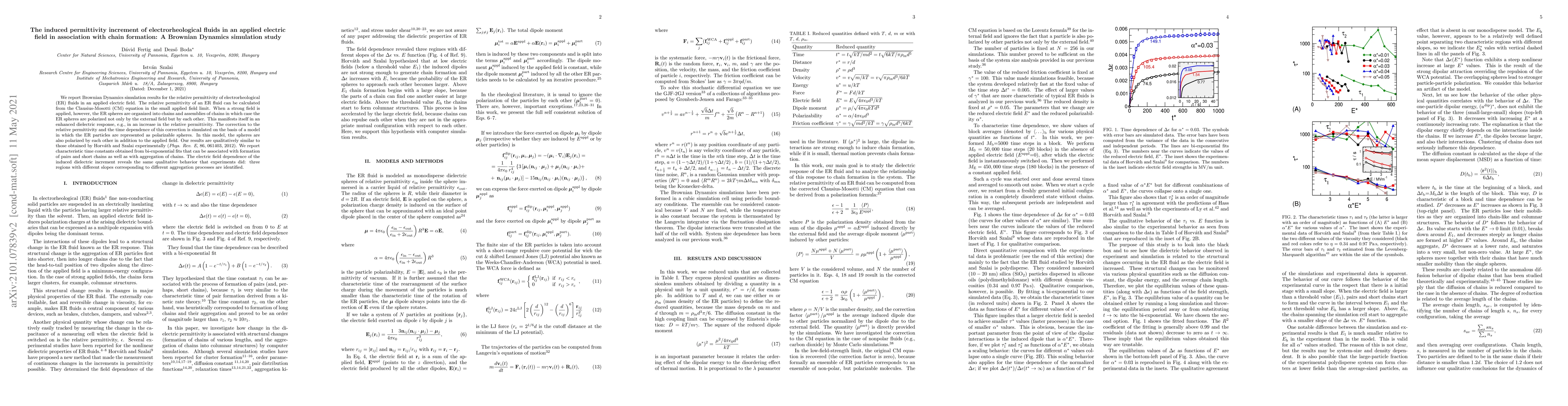 This study uses Brownian Dynamics simulations to investigate the relative permittivity of electrorheological fluids under an applied electric field, revealing enhanced dielectric response due to chain formation. The simulation results show characteristic time constants associated with pair and chain formation, and identify three regions of electric field dependence corresponding to different aggregation processes.