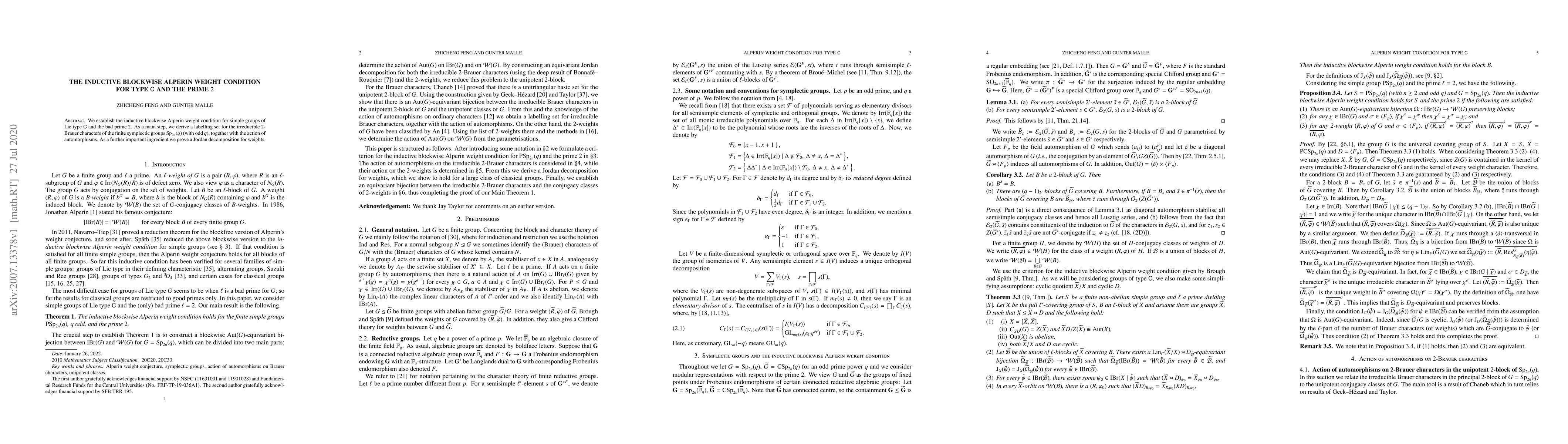 The main novelty lies in the derivation of a labelling set for irreducible 2-Brauer characters and the proof of a Jordan decomposition for weights, which together allow for the extension of the Alperin weight condition to simple groups of Lie type C and the prime 2.