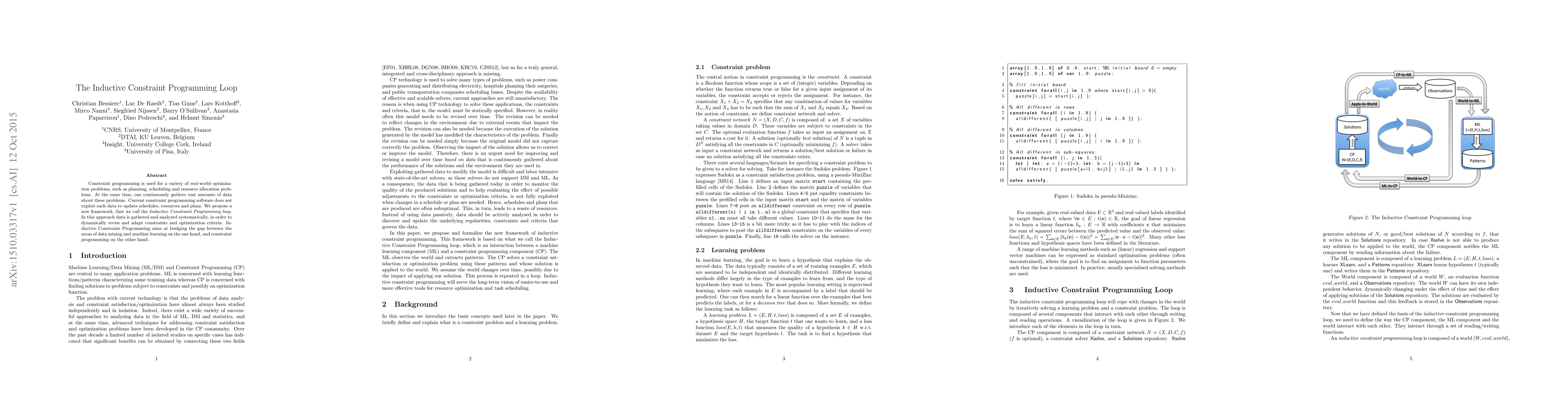 The paper introduces the Inductive Constraint Programming loop, a framework that systematically analyzes gathered data to dynamically update and adapt constraints and optimization criteria in constraint programming, aiming to bridge data mining and machine learning with traditional constraint programming.