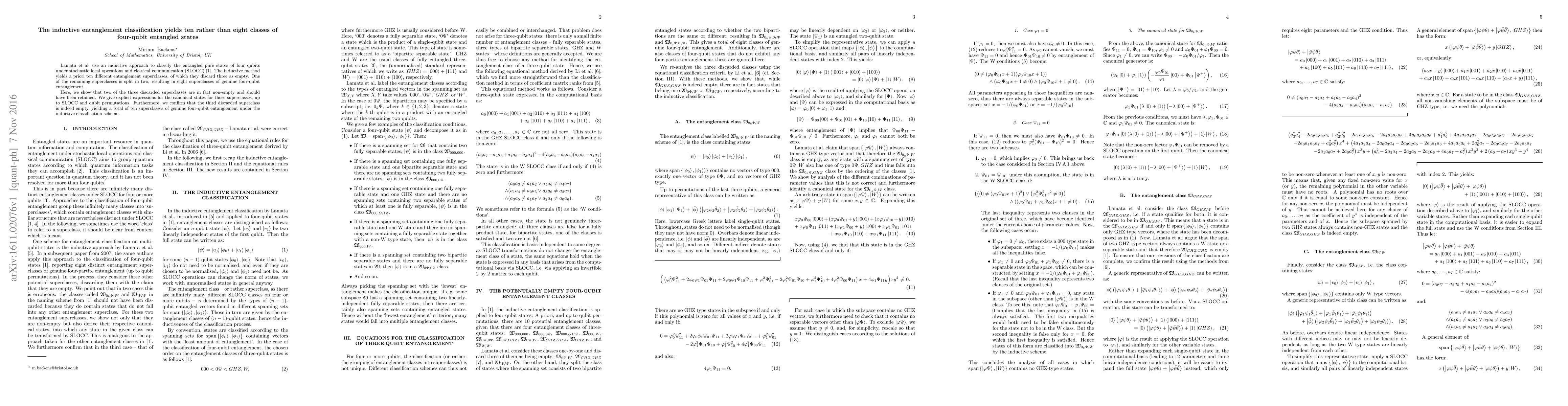 Lamata et al. use an inductive approach to classify the entangled pure states of four qubits under stochastic local operations and classical communication (SLOCC) [PRA 75(2), 022318 (2007)]. The inductive method yields a priori ten different entanglement superclasses, of which they discard three as empty. One of the remaining superclasses is split in two, resulting in eight superclasses of genuine four-qubit entanglement. Here, we show that two of the three discarded superclasses are in fact non-empty and should have been retained. We give explicit expressions for the canonical states for those superclasses, up to SLOCC and qubit permutations. Furthermore, we confirm that the third discarded superclass is indeed empty, yielding a total of ten superclasses of genuine four-qubit entanglement under the inductive classification scheme.