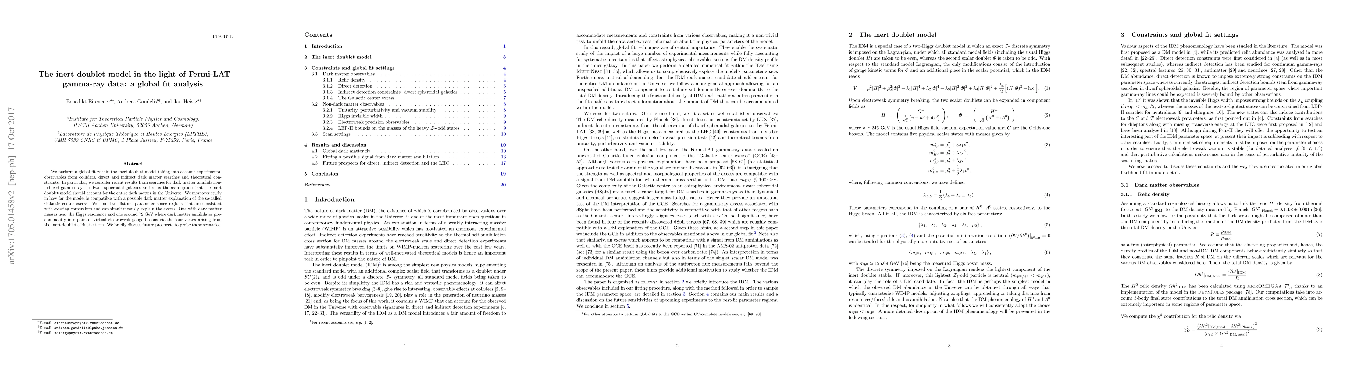 We perform a global fit within the inert doublet model taking into account experimental observables from colliders, direct and indirect dark matter searches and theoretical constraints. In particular, we consider recent results from searches for dark matter annihilation-induced gamma-rays in dwarf spheroidal galaxies and relax the assumption that the inert doublet model should account for the entire dark matter in the Universe. We moreover study in how far the model is compatible with a possible dark matter explanation of the so-called Galactic center excess. We find two distinct parameter space regions that are consistent with existing constraints and can simultaneously explain the excess: One with dark matter masses near the Higgs resonance and one around 72 GeV where dark matter annihilates predominantly into pairs of virtual electroweak gauge bosons via the four-vertex arising from the inert doublet's kinetic term. We briefly discuss future prospects to probe these scenarios.