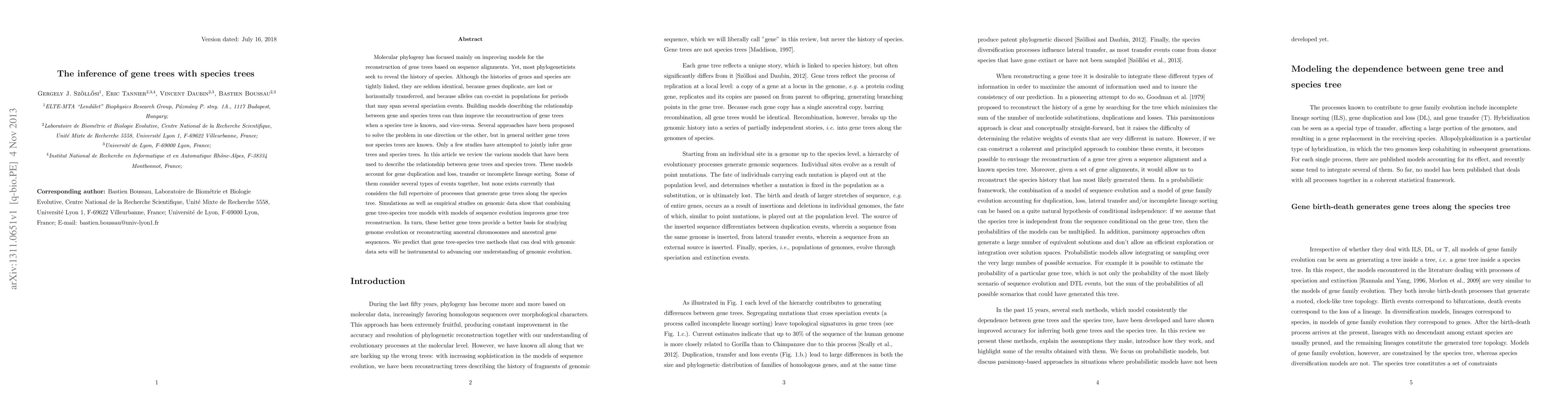 This paper reviews models for jointly inferring gene trees and species trees, considering processes like duplication, loss, transfer, and incomplete lineage sorting. It highlights that integrating gene tree-species tree models with sequence evolution models enhances gene tree reconstruction, ultimately aiding in studying genome evolution and reconstructing ancestral genes.
