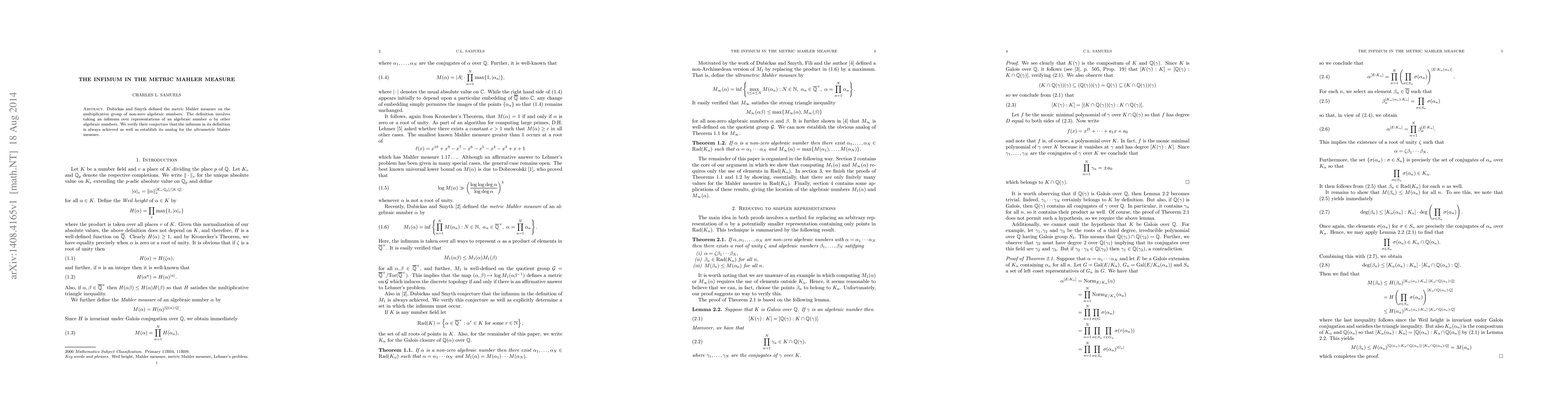 Dubickas and Smyth defined the metric Mahler measure on the multiplicative group of non-zero algebraic numbers. The definition involves taking an infimum over representations of an algebraic number $\alpha$ by other algebraic numbers. We verify their conjecture that the infimum in its definition is always achieved as well as establish its analog for the ultrametric Mahler measure.