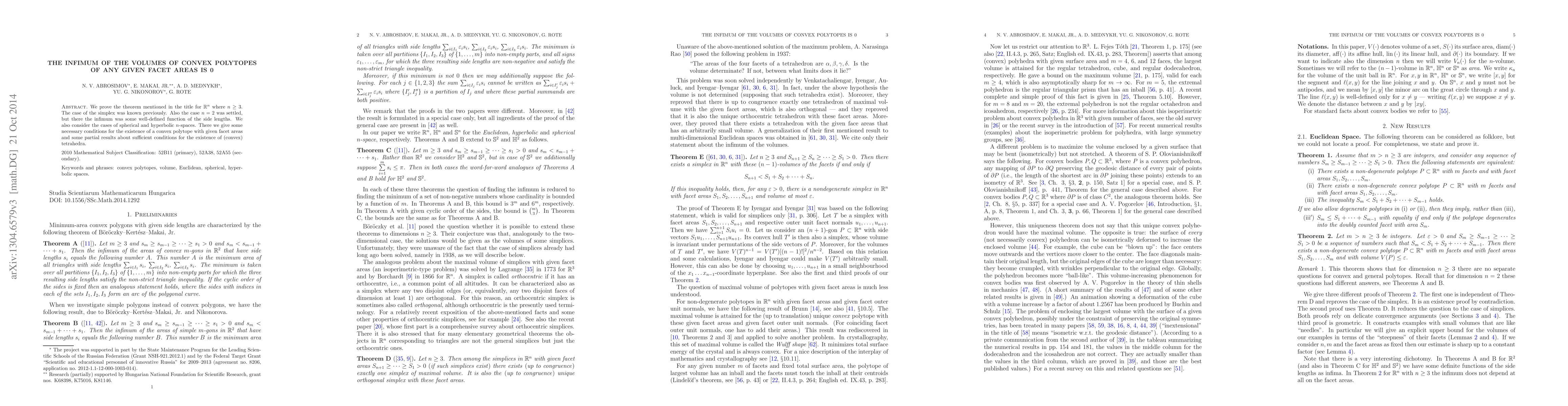 We prove the theorem mentioned in the title, for ${\mathbb{R}}^n$, where $n \ge 3$. The case of the simplex was known previously. Also, the case $n=2$ was settled, but there the infimum was some well-defined function of the side lengths. We also consider the cases of spherical and hyperbolic $n$-spaces. There we give some necessary conditions for the existence of a convex polytope with given facet areas, and some partial results about sufficient conditions for the existence of (convex) tetrahedra.