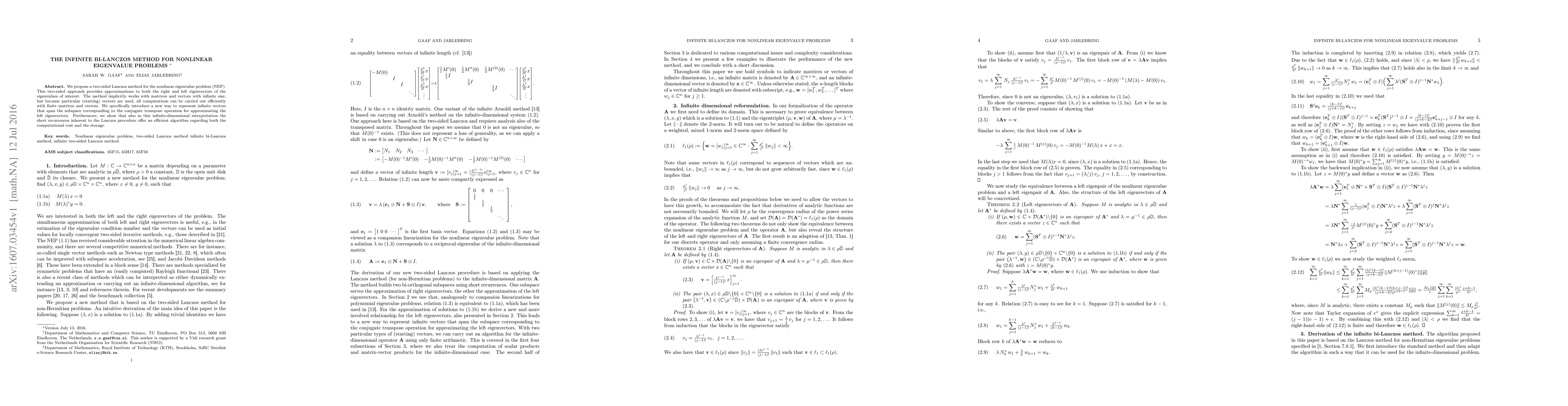 The paper proposes a two-sided Lanczos method for solving nonlinear eigenvalue problems, efficiently approximating both right and left eigenvectors using finite computations despite working with infinite-dimensional vectors. It introduces a novel representation for infinite vectors to handle left eigenvectors and demonstrates computational efficiency.