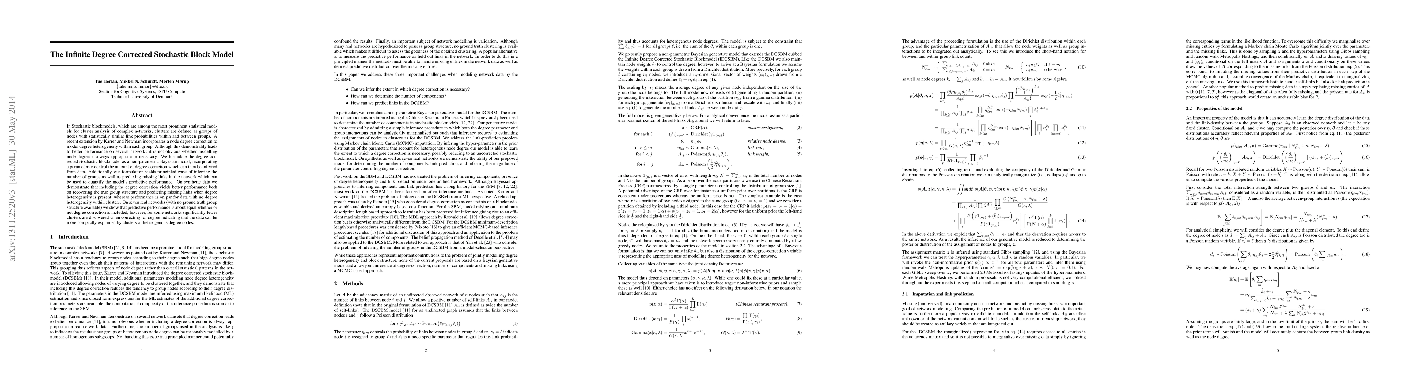 The Infinite Degree Corrected Stochastic Block Model introduces a non-parametric Bayesian approach to better model degree heterogeneity within clusters, demonstrating improved performance on synthetic data with degree heterogeneity. On real networks, degree correction can lead to fewer clusters, suggesting a more compact explanation of the data.