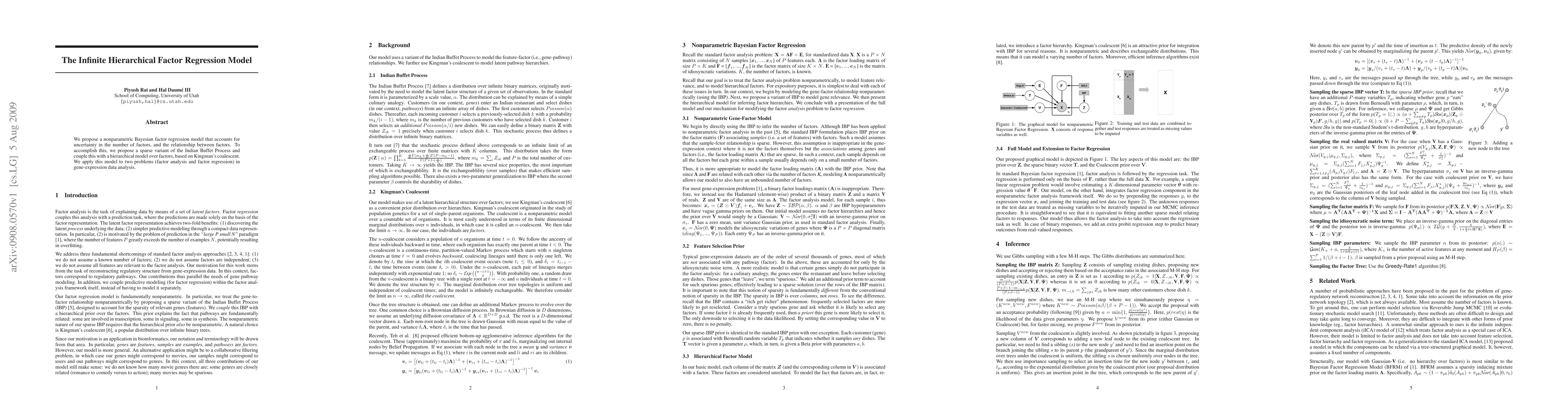 The paper introduces a nonparametric Bayesian factor regression model that uses a sparse Indian Buffet Process and a hierarchical model based on Kingman's coalescent to account for uncertainty in factor numbers and relationships, applied to gene-expression data analysis for factor analysis and regression.