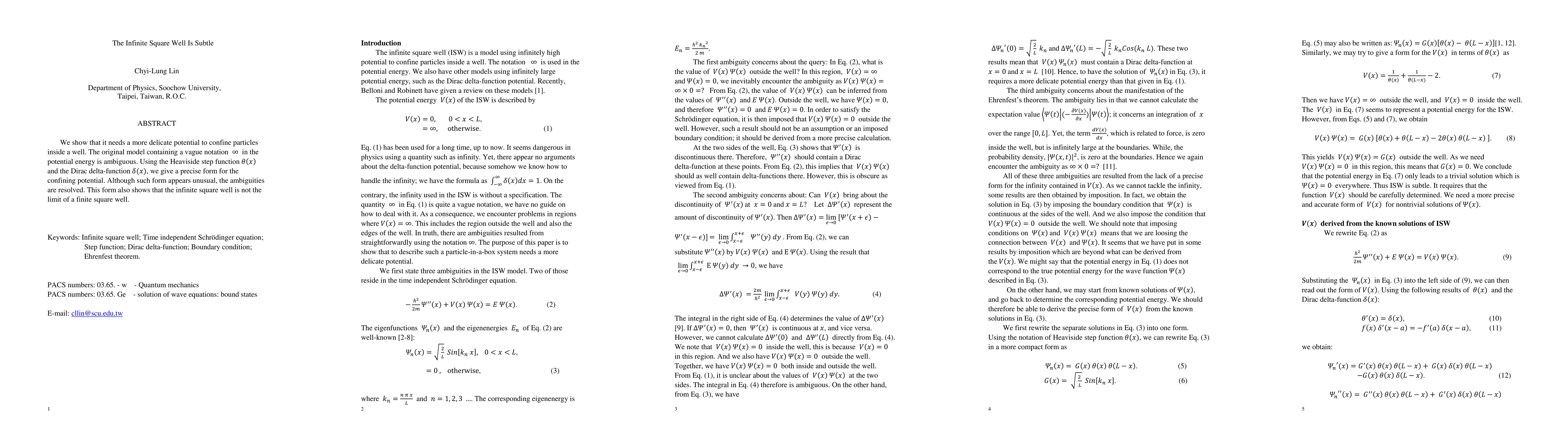 We show that it needs a more delicate potential to confine particles inside a well. The original model containing a vague notation of infinity in the potential energy is ambiguous. Using the Heaviside step function and the Dirac delta-function, we give a precise form for the confining potential. Although such form appears unusual, the ambiguities are resolved. This form also shows that the infinite square well is not the limit of a finite square well.