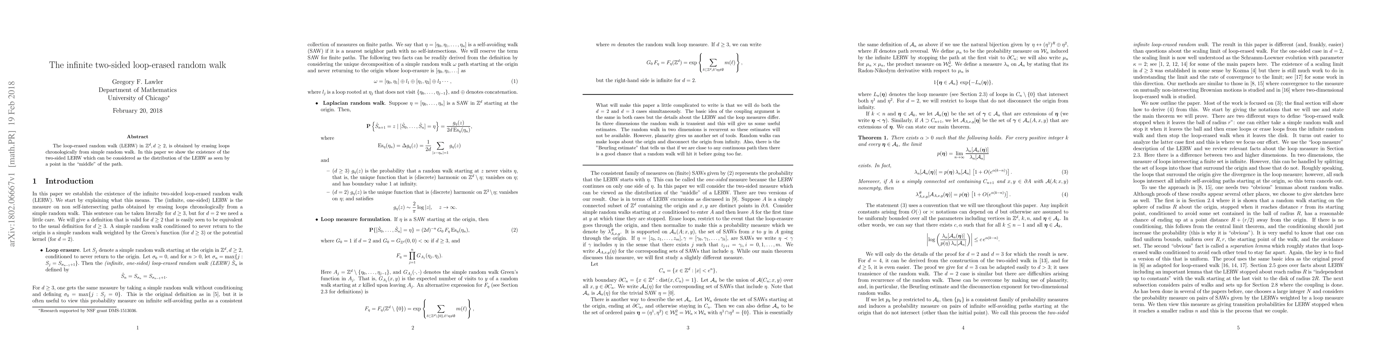 Summary: This paper demonstrates the existence of the two-sided loop-erased random walk (LERW) in $ \Z^d, d \geq 2$, which represents the LERW viewed from the center of the path, erasing loops chronologically from a simple random walk. This provides a new perspective on the LERW process.