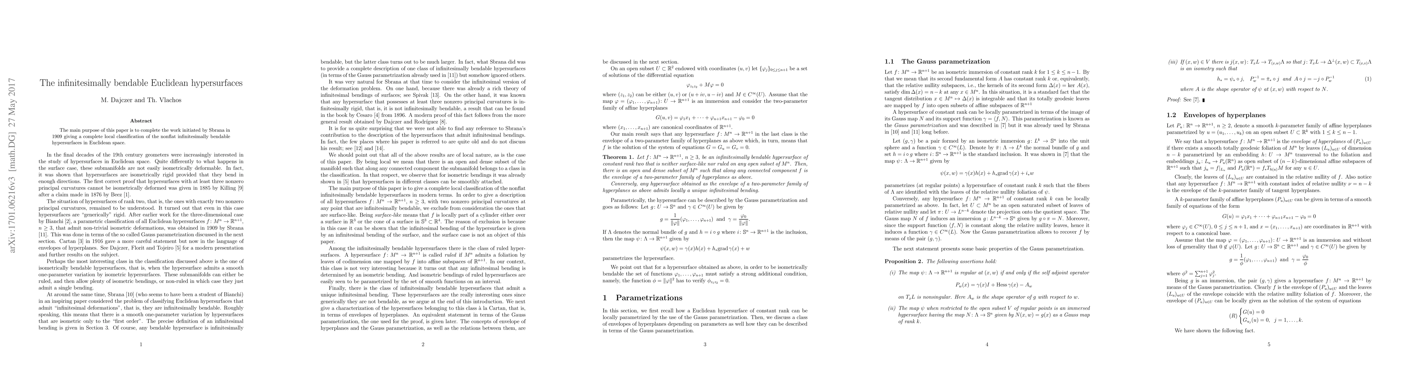 This paper completes Sbrana's 1909 work by providing a comprehensive local classification of nonflat hypersurfaces in Euclidean space that can be infinitesimally bent. It focuses on the geometric properties and local behavior of these surfaces.