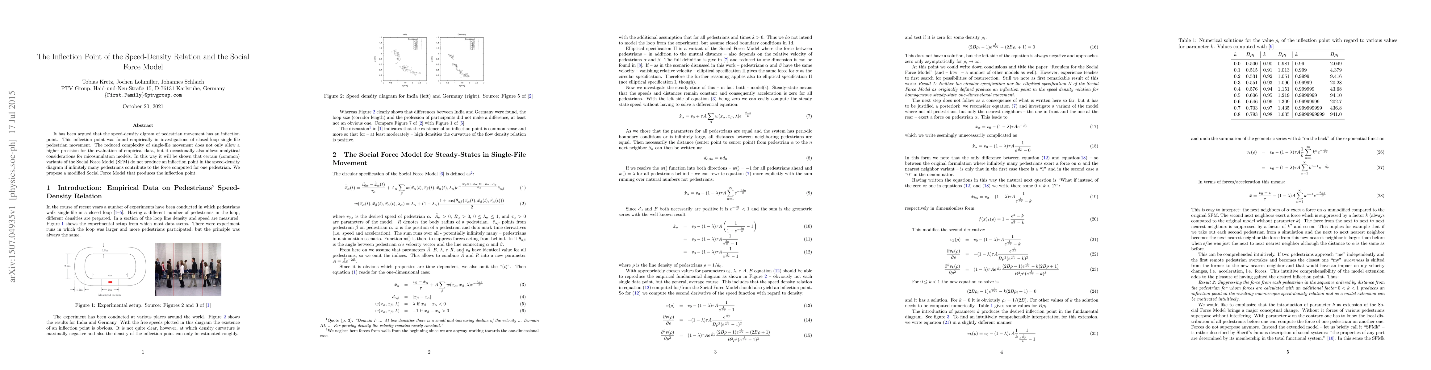 This paper investigates the inflection point in the speed-density diagram of pedestrian movement, demonstrating that common variants of the Social Force Model fail to produce this feature. A modified Social Force Model is proposed to incorporate the inflection point observed in empirical data.