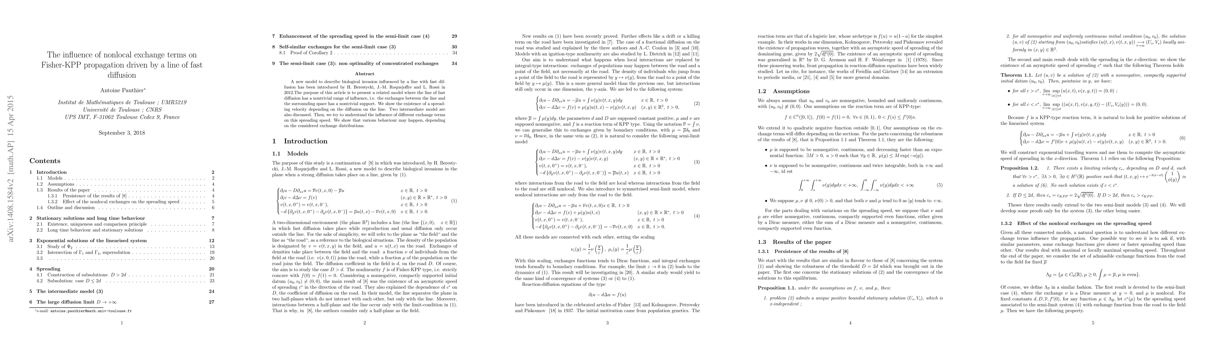 A new model to describe biological invasion influenced by a line with fast diffusion has been introduced by H. Berestycki, J.-M. Roquejoffre and L. Rossi in 2012.The purpose of this article is to present a related model where the line of fast diffusion has a nontrivial range of influence, i.e. the exchanges between the line and the surrounding space has a nontrivial support. We show the existence of a spreading velocity depending on the diffusion on the line. Two intermediate model are also discussed. Then, we try to understand the influence of different exchange terms on this spreading speed. We show that various behaviour may happen, depending on the considered exchange distributions.