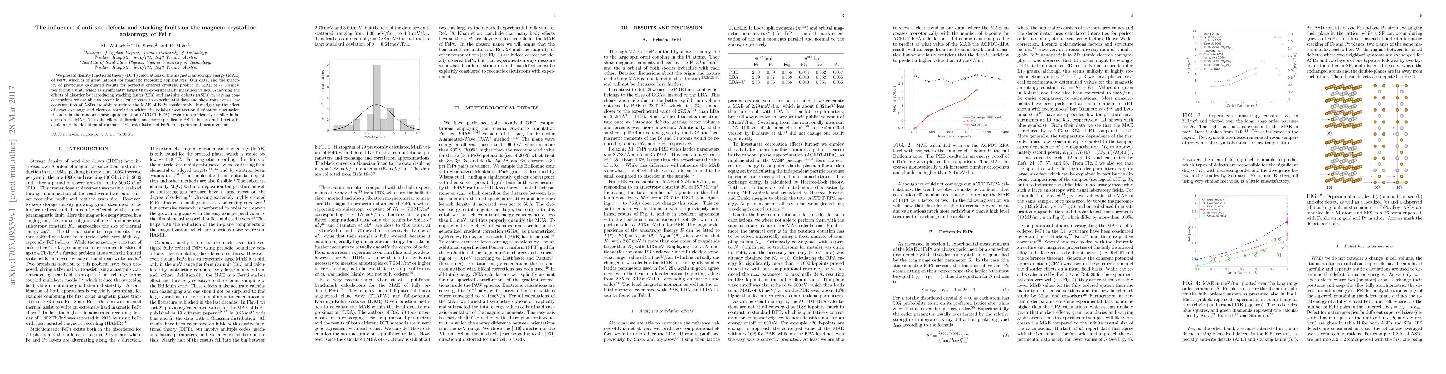 We present density functional theory (DFT) calculations of the magnetic anisotropy energy (MAE) of FePt, which is of great interest for magnetic recording applications. Our data, and the majority of previously calculated results for perfectly ordered crystals, predict an MAE of $\sim 3.0$ meV per formula unit, which is significantly larger than experimentally measured values. Analyzing the effects of disorder by introducing stacking faults (SFs) and anti site defects (ASDs) in varying concentrations we are able to reconcile calculations with experimental data and show that even a low concentration of ASDs are able to reduce the MAE of FePt considerably. Investigating the effect of exact exchange and electron correlation within the adiabatic-connection dissipation fluctuation theorem in the random phase approximation (ACDFT-RPA) reveals a significantly smaller influence on the MAE. Thus the effect of disorder, and more specifically ASDs, is the crucial factor in explaining the deviation of common DFT calculations of FePt to experimental measurements.
