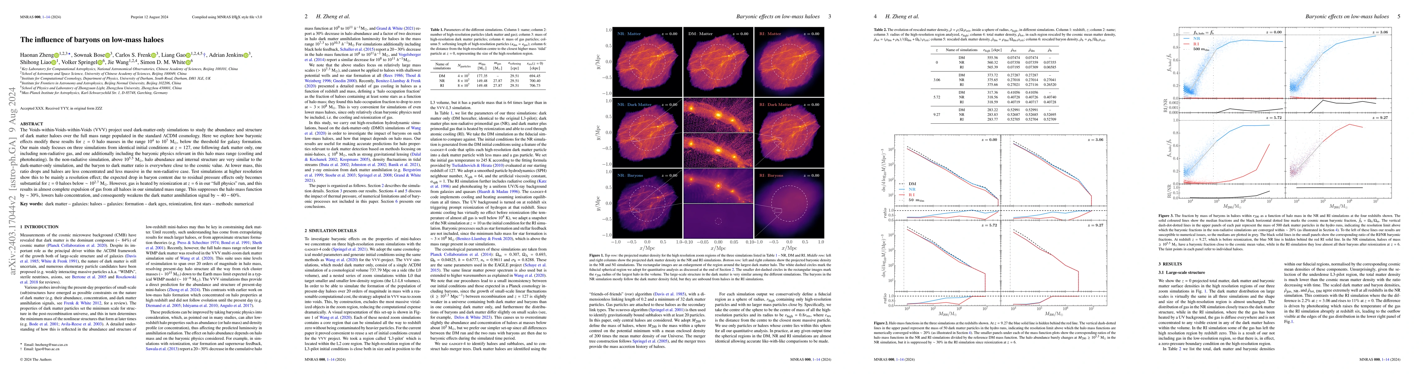 The Voids-within-Voids-within-Voids (VVV) project used dark-matter-only simulations to study the abundance and structure of dark matter haloes over the full mass range populated in the standard $\Lambda\mathrm{CDM}$ cosmology. Here we explore how baryonic effects modify these results for $z=0$ halo masses in the range $10^4$ to $10^7~\mathrm{M_\odot}$, below the threshold for galaxy formation. Our main study focuses on three simulations from identical initial conditions at $z=127$, one following dark matter only, one including non-radiative gas, and one additionally including the baryonic physics relevant in this halo mass range (cooling and photoheating). In the non-radiative simulation, above $10^{5.5}~\mathrm{M_\odot}$, halo abundance and internal structure are very similar to the dark-matter-only simulation, and the baryon to dark matter ratio is everywhere close to the cosmic value. At lower mass, this ratio drops and haloes are less concentrated and less massive in the non-radiative case. Test simulations at higher resolution show this to be mainly a resolution effect; the expected drop in baryon content due to residual pressure effects only becomes substantial for $z=0$ haloes below $\sim 10^{2.7}~\mathrm{M_\odot}$. However, gas is heated by reionization at $z=6$ in our ``full physics'' run, and this results in almost complete expulsion of gas from all haloes in our simulated mass range. This suppresses the halo mass function by $\sim 30 \%$, lowers halo concentration, and consequently weakens the dark matter annihilation signal by $\sim 40-60 \%$.