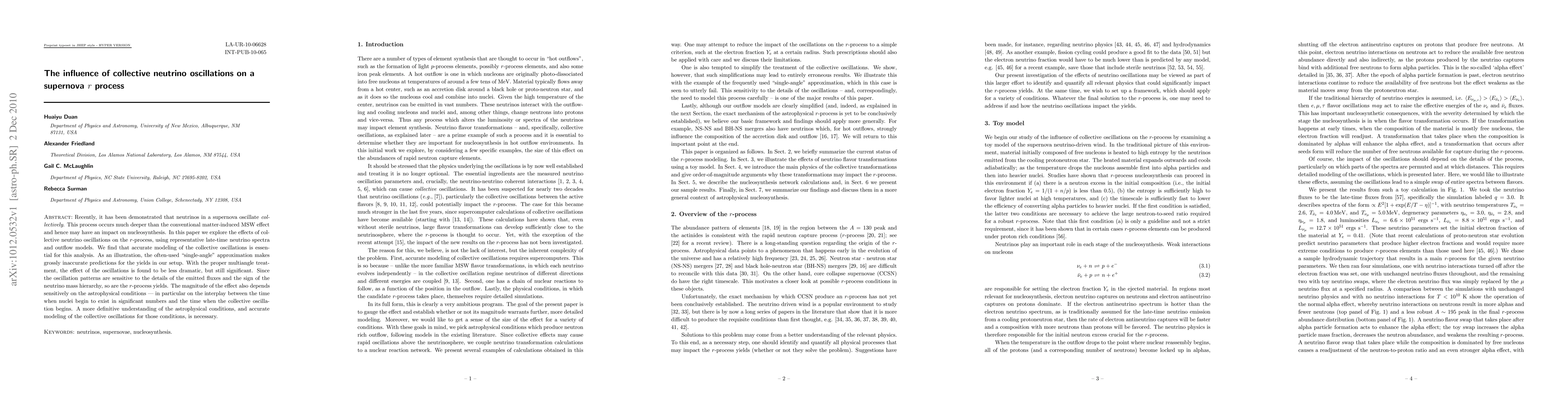 This paper investigates the influence of collective neutrino oscillations in a supernova on r-process nucleosynthesis, finding that accurate modeling is crucial. While the effect is significant, the "single-angle" approximation is shown to be inaccurate, highlighting the need for multiangle treatments and detailed astrophysical conditions.